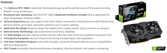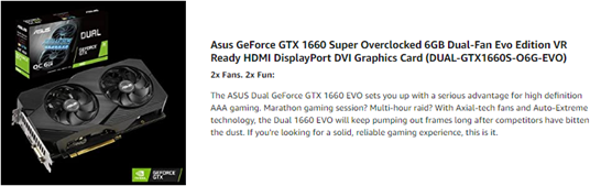 Card Description | GeForce GTX 1660 SUPER |