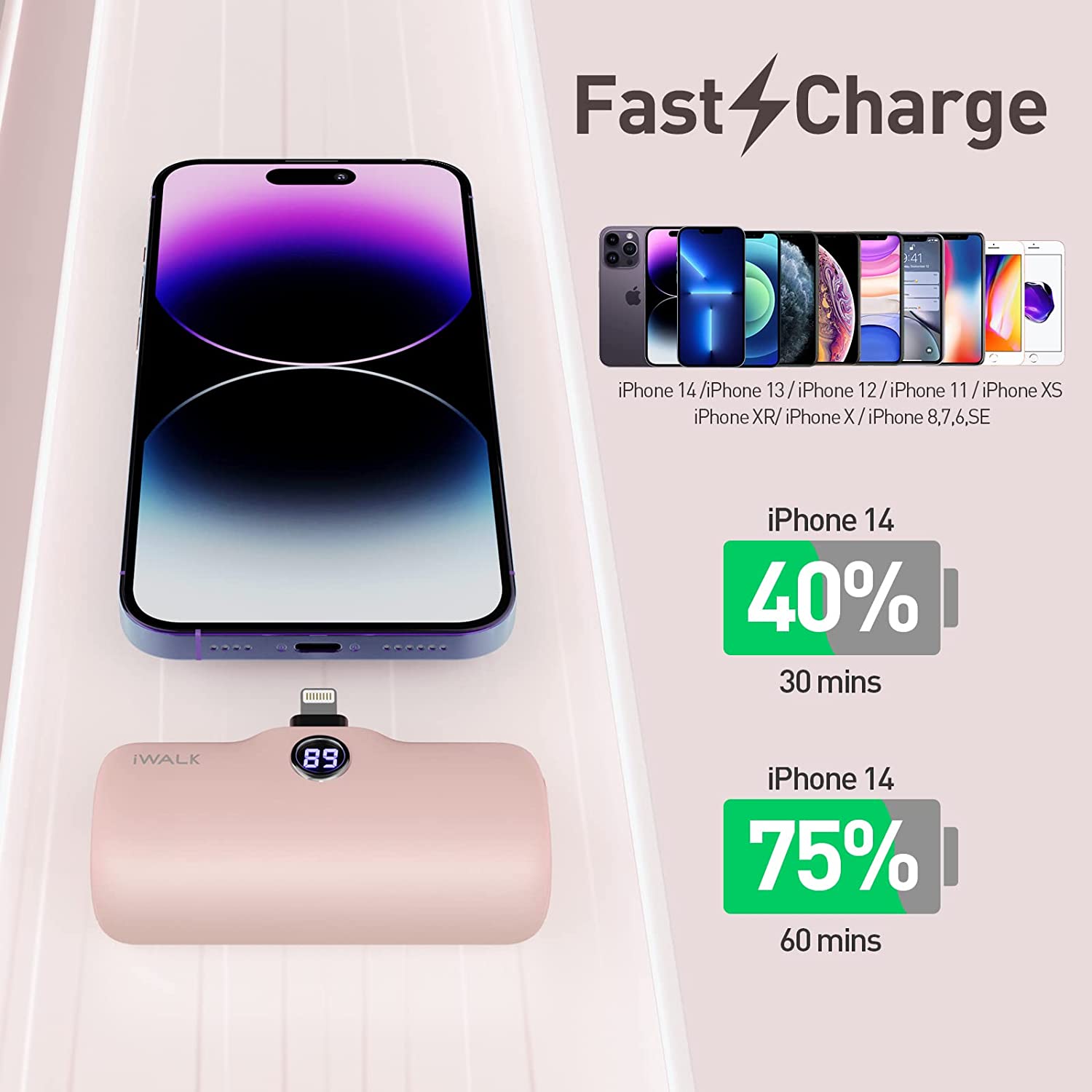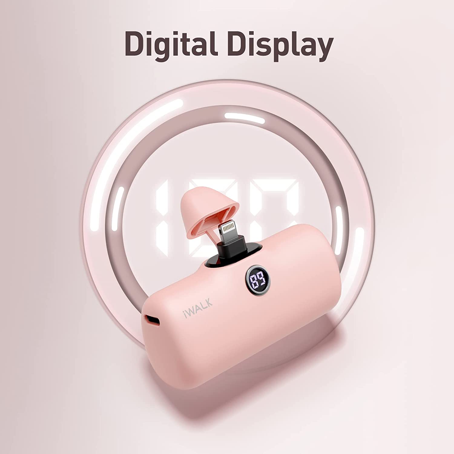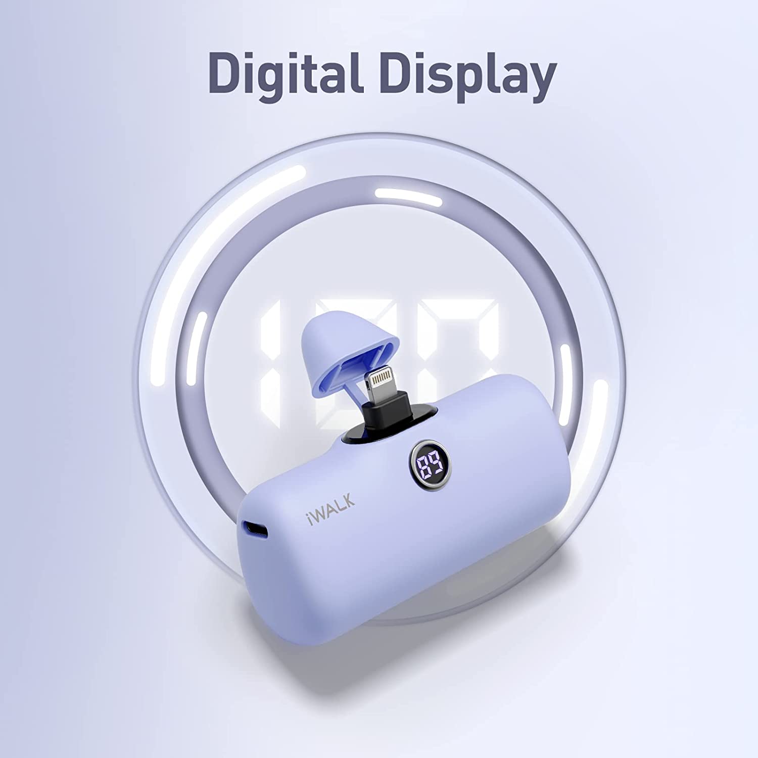iWALK LinkPod Portable Charger 4800mAh Power Bank PD Fast Charging Small Docking Battery with LED Display Compatible with iPhone 14/14 Pro Max/13/13 Pro Max/12/12 Pro/11/X/8/7/6,Purple