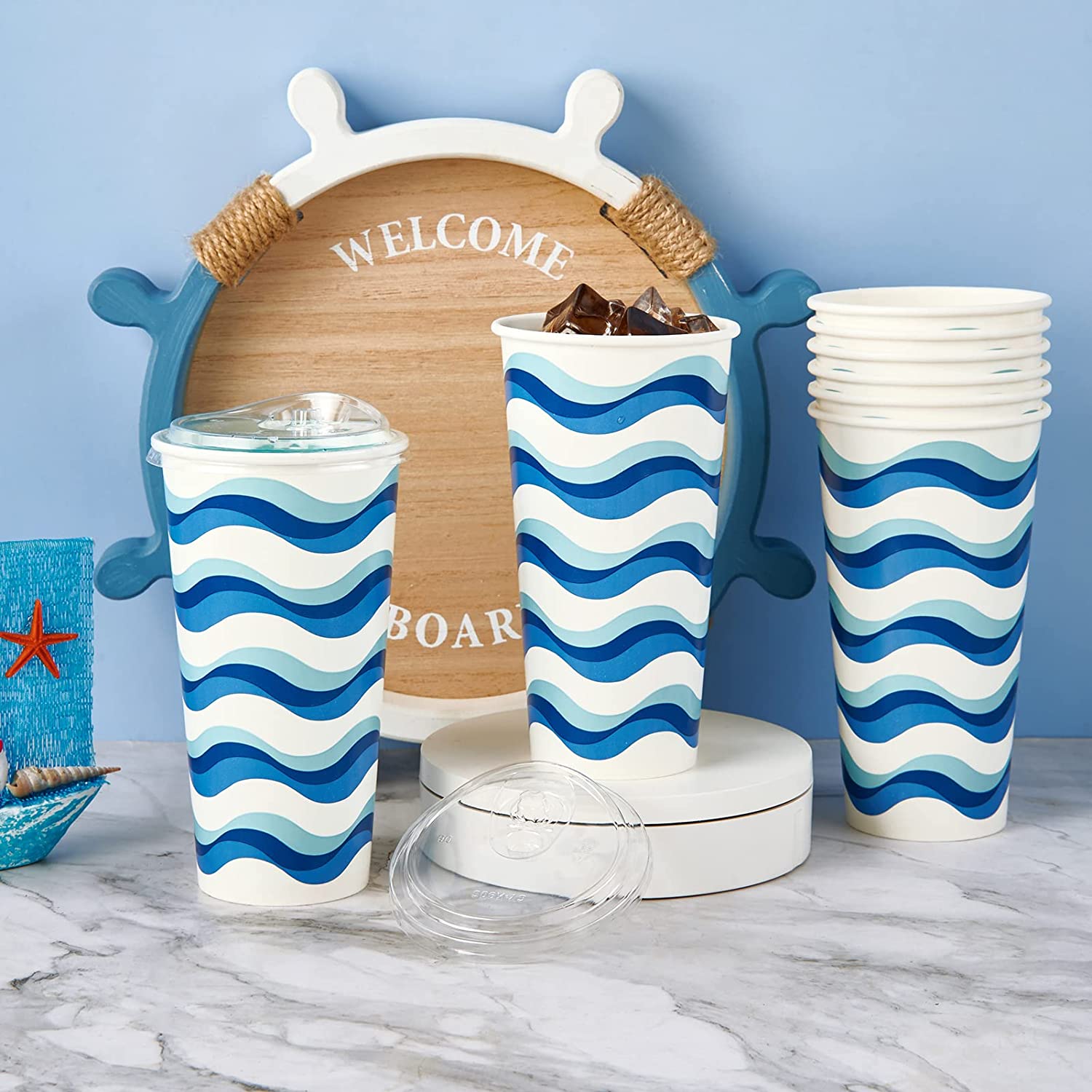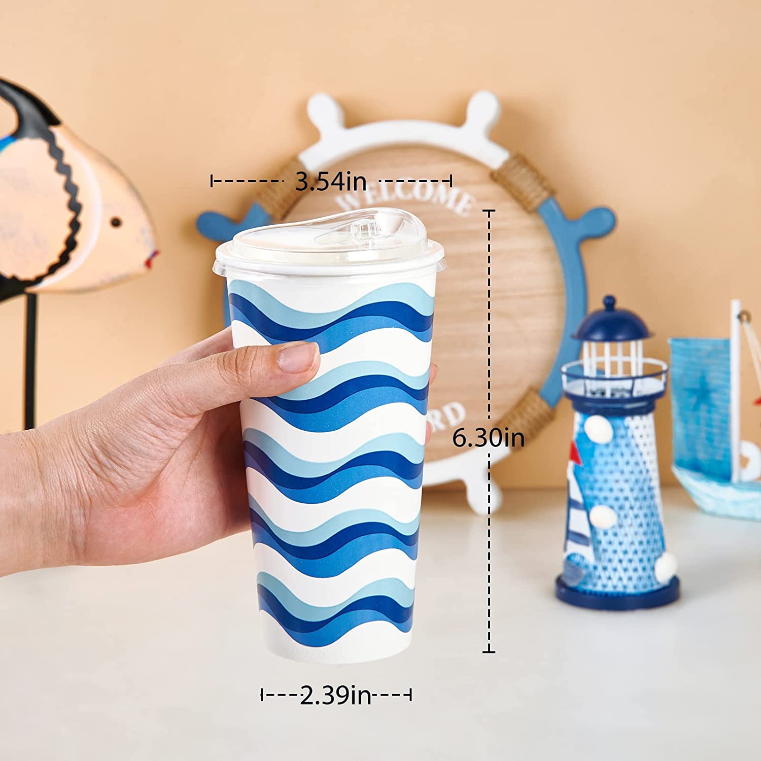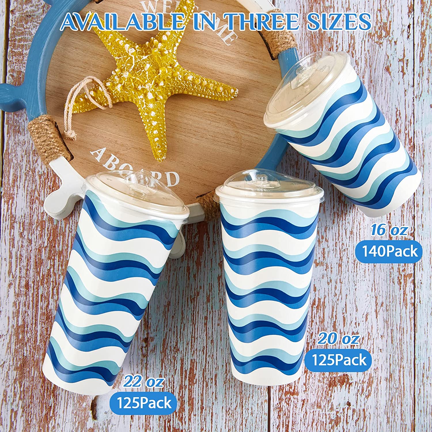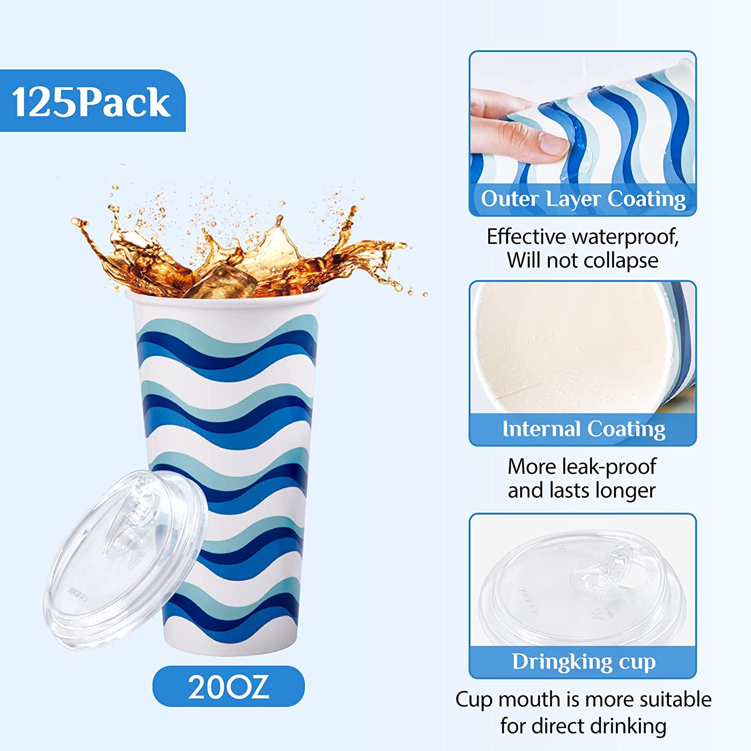 [125 Pack] 22oz Paper Cups, Disposable Paper Cups with Strawless Sip Lids, Paper Cold Cups With Lids Specially Designed for Cold Drinks, Beverages, Juices, and All Kinds of Cold Drinks