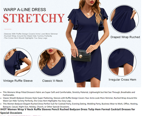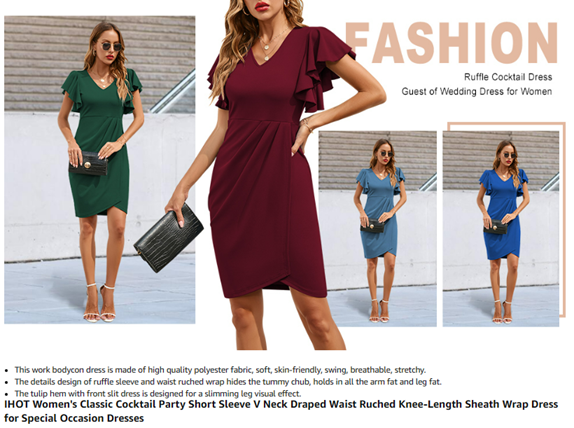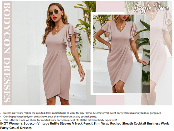 Classic Sheath Cocktail Dresses Style, Super Flattering, Sleeves with Ruffle Design Covers Your Arms Look More Slimmer, Ruched Wrap Around the Waist can Hide Tummy Perfectly, the Cross Hem Highlights Your Sexy Legs.