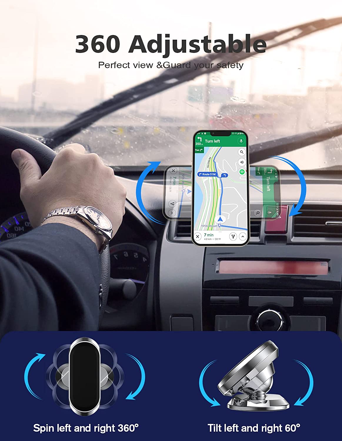 • [Best Viewing Angle]: Magnetic Car Cell Phone Mount is portable accessories and only the size of chewing gum. It will not block any view when driving. It allows 360-degree rotation,also position the phone horizontally or vertically. for the best viewing angle based on your comfort.