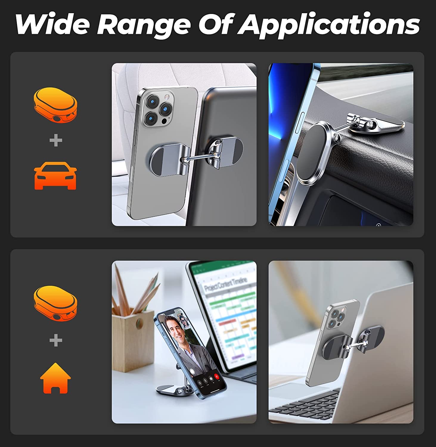 Dual 360 degree and easy to install: The magnetic car phone holder is a portable accessory. It does not block any view while driving. Equipped with double 360 degree adjustable connector ball, you can adjust the angle of the phone at will. Please find detailed installation diagrams on the product page, correct installation can avoid a lot of unnecessary trouble.