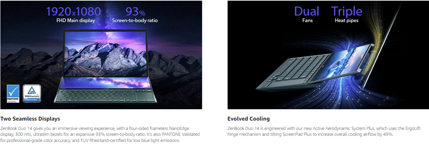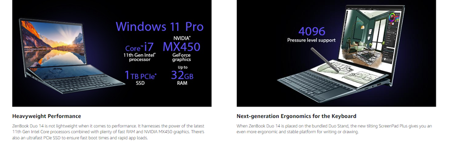 ASUS ZenBook Duo 14 UX482 14” FHD NanoEdge Touch Display, Core i7-1195G7, GeForce MX450, 16GB RAM, 1TB SSD, ScreenPad Plus, Windows 11 Pro, WiFi 6E Celestial Blue, UX482EGR-XB74T