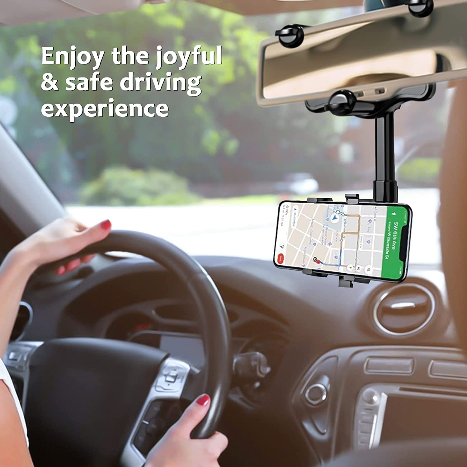 • ROBUST AND DURABLE: The four-claw design of our rearview mirror accessories can firmly fix the phone in place no matter how rough the road is. Suitable for all mobile phones and all models.