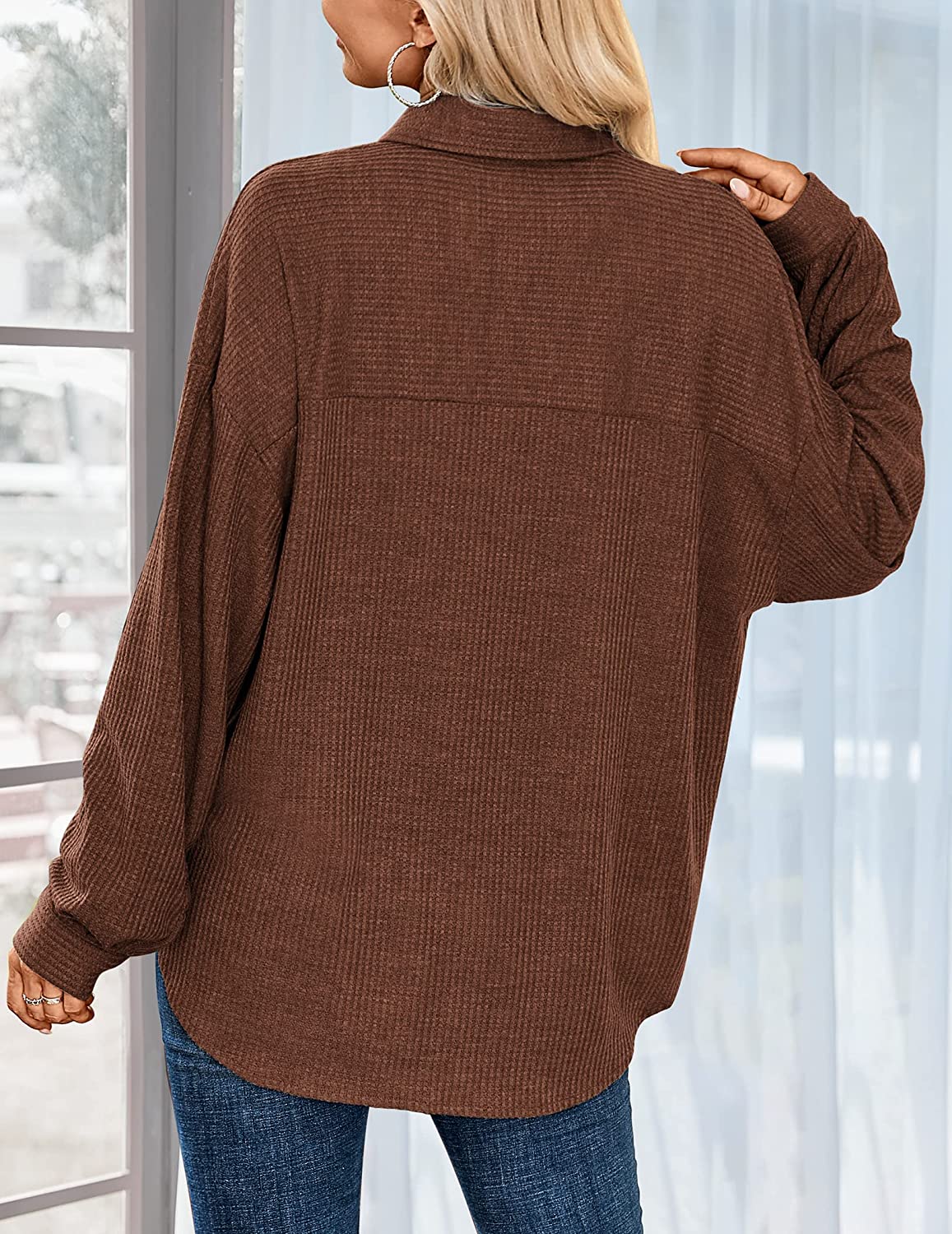 Match All Styles: Waffle shacket women button down shirts can be matched with short jeans, skinny leggings, hot pants, fashionable and vintage, button up shirt women is a must-have for any ladies,it goes well with everything.