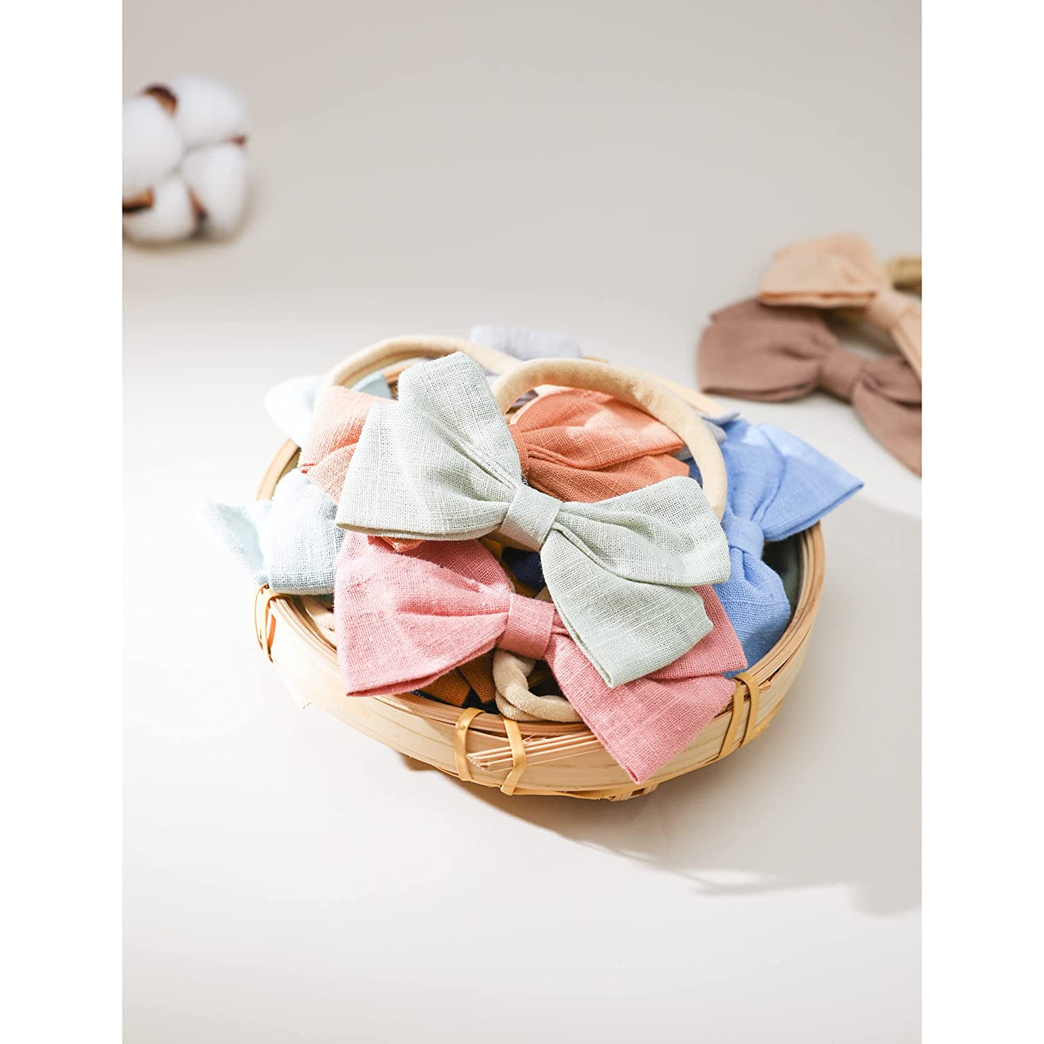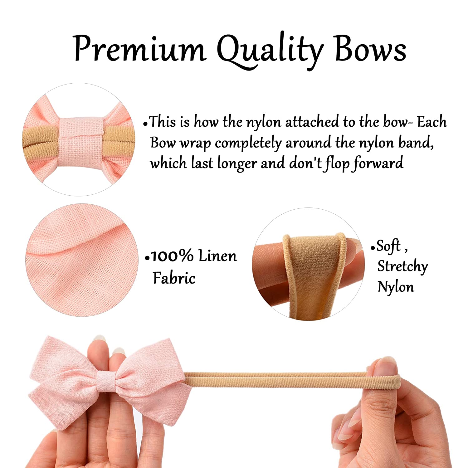 • 【100% Linen Fabric】: These baby bows on nylon headband are lovingly designed and handmade using natural linen fabrics.Jesries Each bow is handcrafted with care and professions. The material is gentle and soft which is safe to use on your baby’s head.