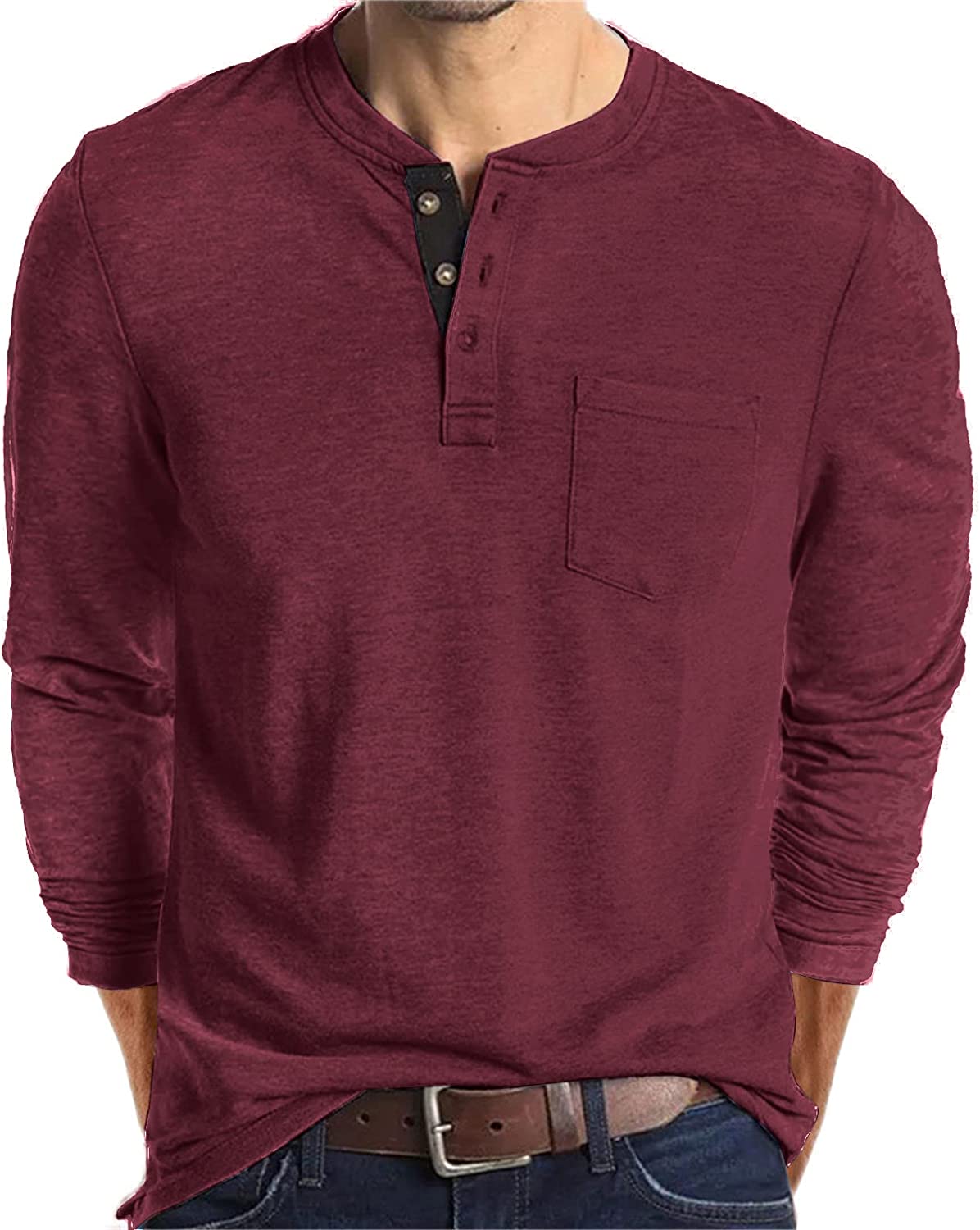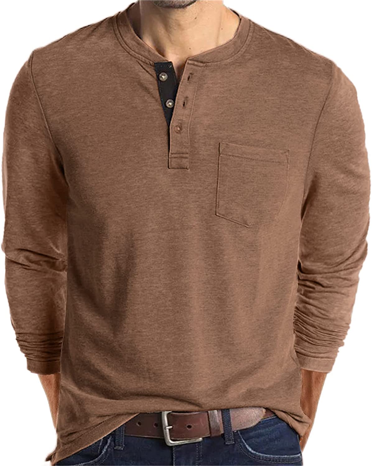 Lexiart Mens Fashion Henley Shirts Long Sleeve Button Cotton T-Shirt with Pocket