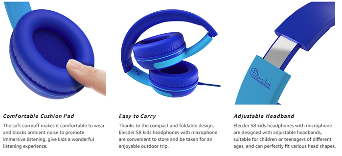 - Protect Kids' Hearing & Excellent Sound - Elecder S8 kids headphones’ volume limited function makes the volume level be adjusted between 85 dB and 94dB according to different noise environments. Not only to ensure safe listening but also to get clear sound in noisy environments. Better to protect your child's hearing! This Stereo bass kids headphone with excellent sound effects can also give the kids a better listening experience.