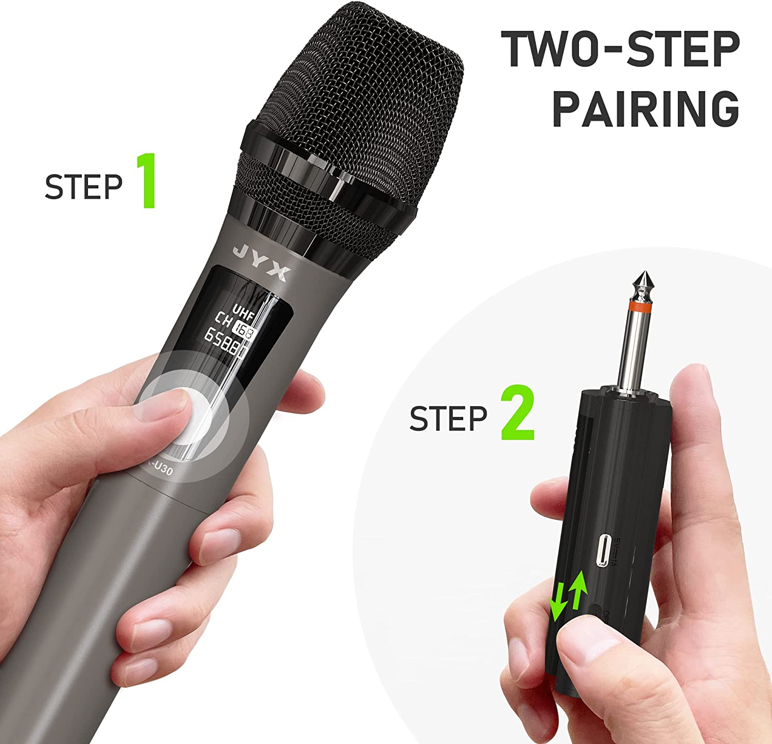 • ? <b>Wide Compatibility:</b> This karaoke microphone is compatible with all the devices with 6.35mm(1/4") and 3.55mm(1/8") MIC input. The JYX microphone system comes with a 6.35mm receiver and 3.55mm to 6.35mm adapter, works for karaoke speaker, outdoor speaker, singing machine, PA system, power amplifier, car audia system etc.
