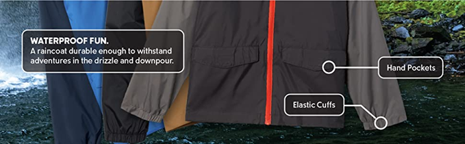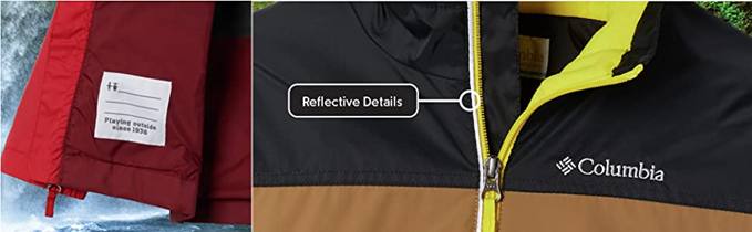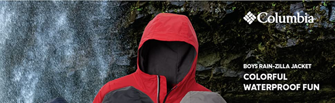 Perfect for those rainy, mud puddle stomping, slushy in-between-season days, the Columbia Boy’s Rain-Zilla™ Jacket is a lightweight waterproof rain barrier that packs versatile protection in multiple colors. The fleece lining just elevates the warmth and enjoyment to a higher level. This versatile rain coat is just as comfortable acting as an everyday windbreaker. The microfleece lining just elevates the comfort and makes this jacket something to be worn on its own. it features an adjustable hood, elastic cuffs to keep the wet and cold out, full zip front, two hand pockets with tab closures, and reflective accents. Offered in multiple colors and sizes. Regular Fit. To ensure the size you choose is right, utilize our sizing chart and the following measurement instructions: For the sleeves, start at the center back of your neck and measure across the shoulder and down to the sleeve. If you come up with a partial number, round up to the next even number. For the chest, measure at the fullest part of the chest, under the armpits and over the shoulder blades, keeping the tape measure firm and level. Imported. Shell: 100% nylon. Lining: 100% polyester. Zippered closure. Machine Wash. "