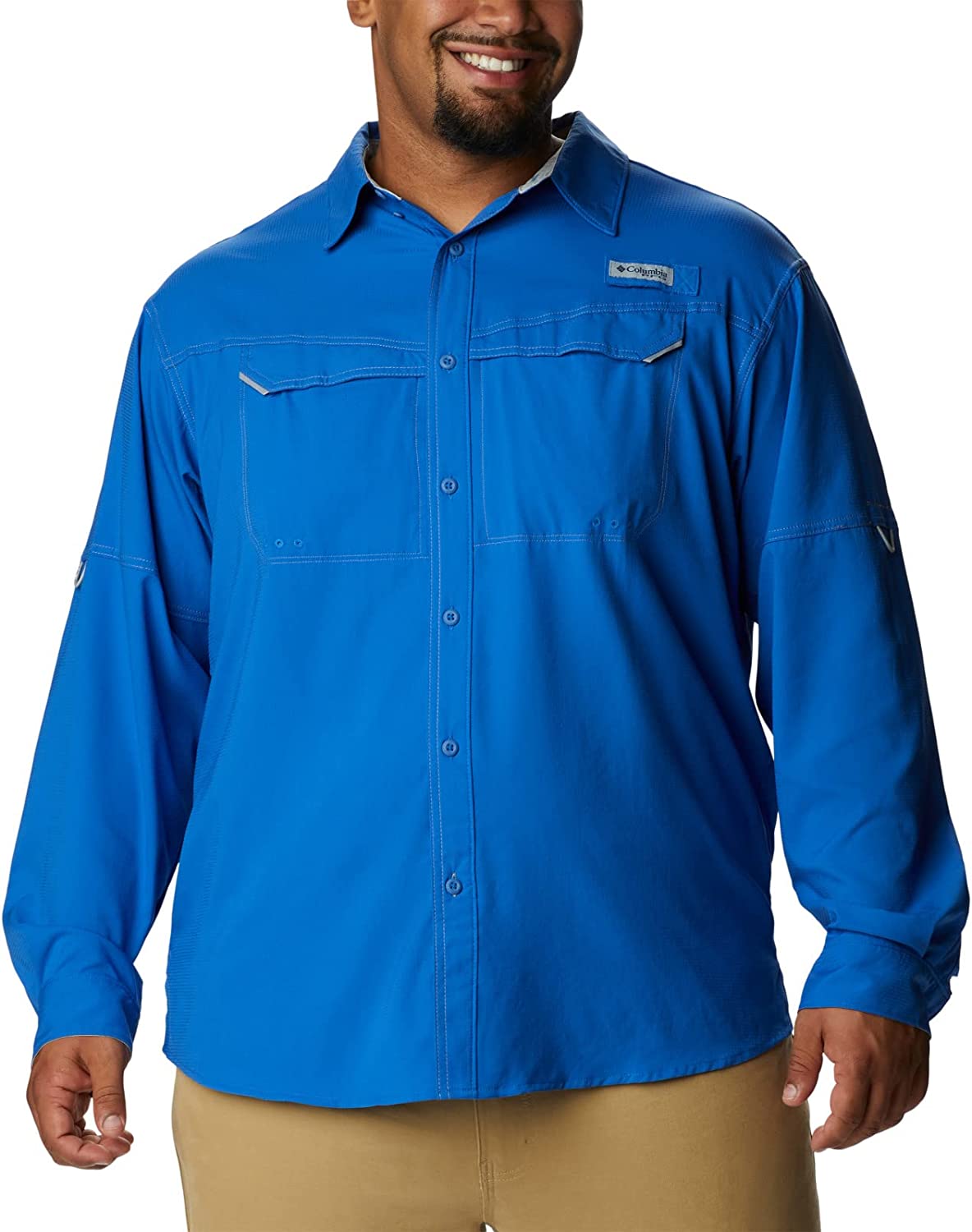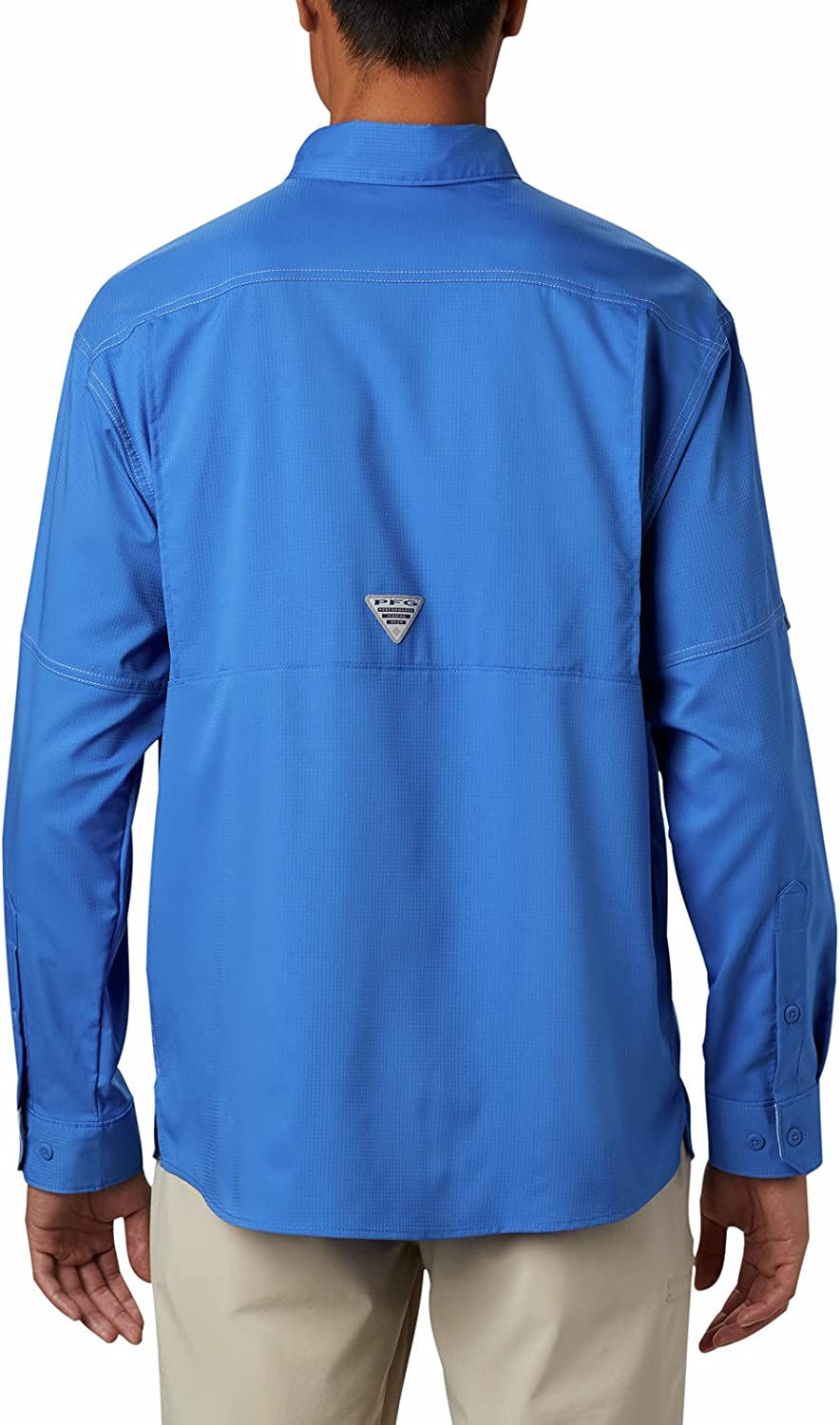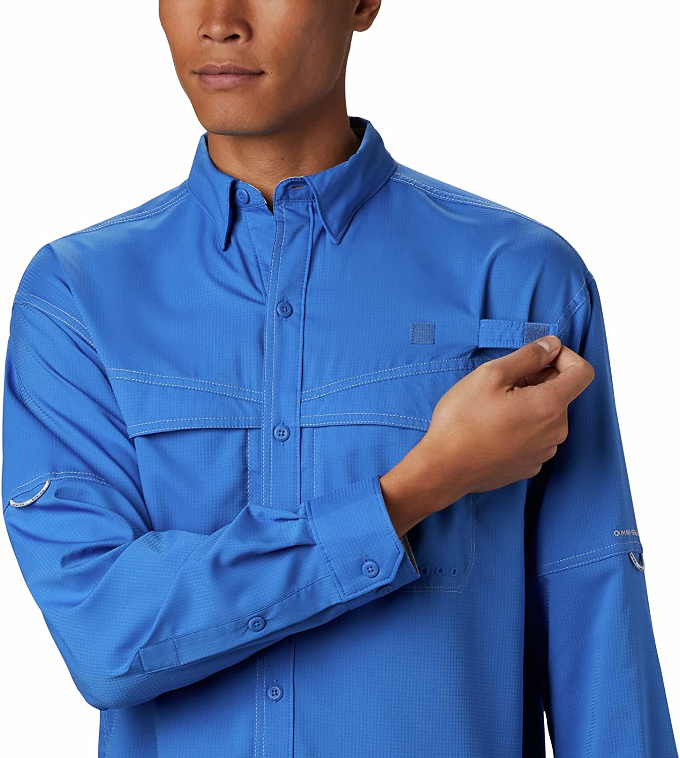 Lightweight ripstop with built-in UPF 40, wicking power, and strategic venting make this shirt ideal for long days under the sun. It combines two essential technologies, Omni-Shade sun protection and Omni-Wick wicking power, along with quick-drying properties you'll appreciate on the water. Mesh-lined back vents and roll-up sleeves work hard to keep you cool, while an antimicrobial treatment provides a feeling of all-day freshness. you'll love the handy rod holder and the self-draining chest pockets for storing small gear and tackle. Columbia offers this long-sleeve shirt in multiple colors and sizes. Extended sizing available. Regular Fit.