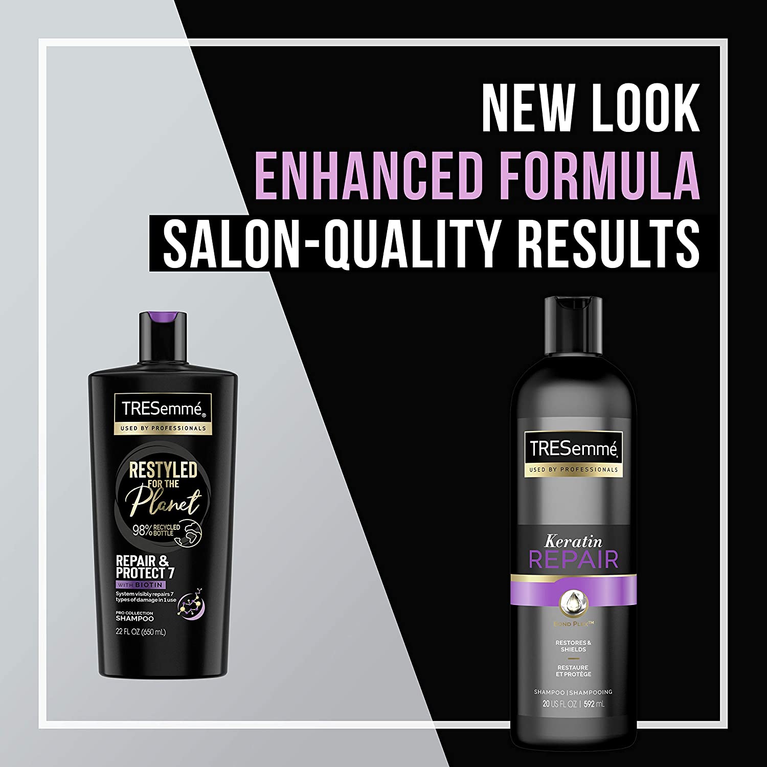 TRESemmé Pro Keratin Repair Shampoo visibly repairs hair from styling and heat damage with smart Bond Plex technology. This smart system works to smooth and shield hair fibers from within for strong, healthy-looking hair that is protected from future damage. Styling, heat, combing and washing can damage hair and break essential hair bonds, resulting in dull and unmanageable hair. Our smart technology penetrates the hair to construct new bonds and strengthen hair from within. To use, Apply a generous amount of the shampoo to wet hair. Massage gently from roots to end to work into a lather. Rinse thoroughly. Follow with TRESemmé Keratin Repair Conditioner. From our origins in salons, we have always been driven by a simple truth: every woman deserves to look fabulous, like they've just stepped out of the salon, without spending a fortune. TRESemmé is dedicated to creating hair care and styling products that are salon quality without the salon price. Great for all hair types, just shampoo in the shower and your hair will feel nourished and ready so that you can take on the day and night with confidence. The TRESemmé mission is to create a disruptive path forward so women can lead the way in life and style.