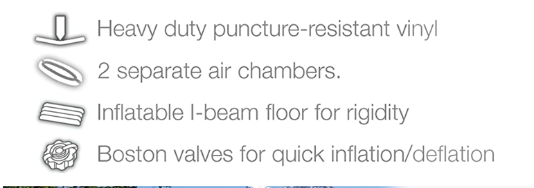 Cockpit is designed for comfort and maximized space, and inflatable I beam floors add stability. Removable skeg provides exceptional directional movement