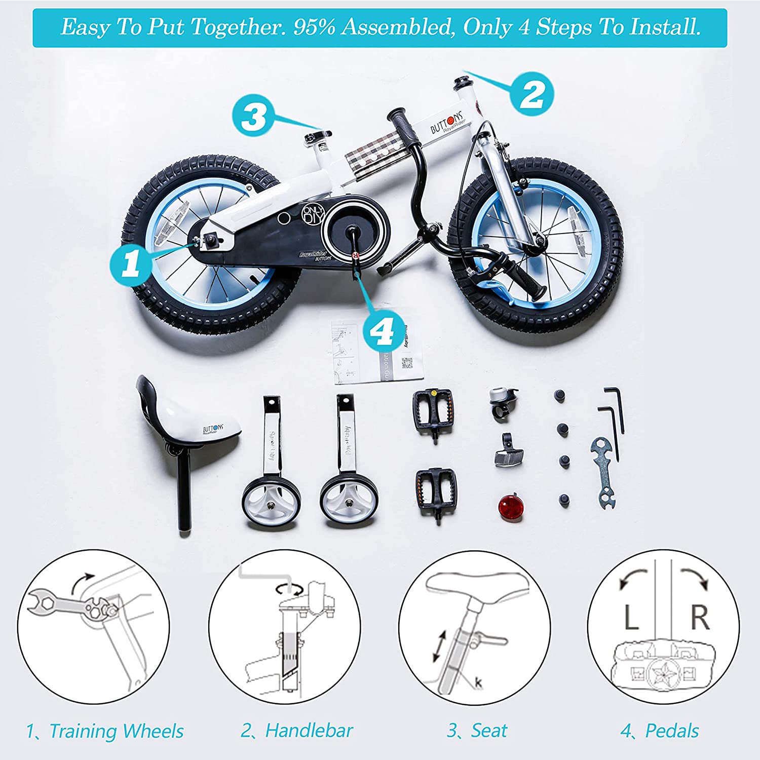 Special Feature‎Handbrake and coaster brake, Adjustable Handlebars, Quick Release Seat, RoyalBaby exclusive premium parts, Adjustable Seat