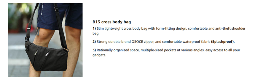 - [Durable and Comfortable Sling Pack]: The strap and the back of the bag is filled with quality fillings which is very durable and comfortable. The breathable fabric will reduce the pressure, its good for your shoulders.