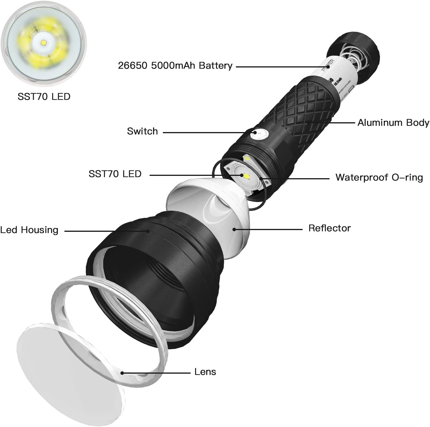 • Please CHARGE the flashlight before use, and pls SCREW DOWN the light head and tail cap first before charging.Please note that the new Catapult V6 SST70 has a slight difference in max output & beam distance than the old one because of the new update of the latest LED.
