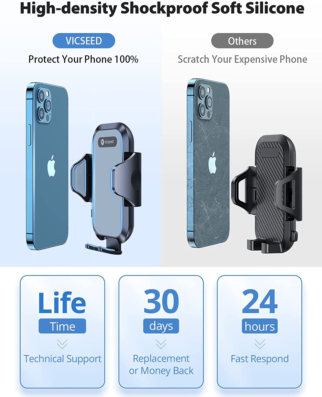 • [ Heads Up Phone Car Mount ] VICSEED car phone mount-lifesaver series can be installed on the dashboard directly in front of the steering wheel which allows this cellphone holder for car to provide much more comfortable viewing than other vent/CD/cup holder mounts. No need to move your head and take your eyes off the road when you need to look at GPS. The VICSEED cell phone holder car keeps your phone right where you need it. Just keep your eyes on the road and enjoy a safe journey
