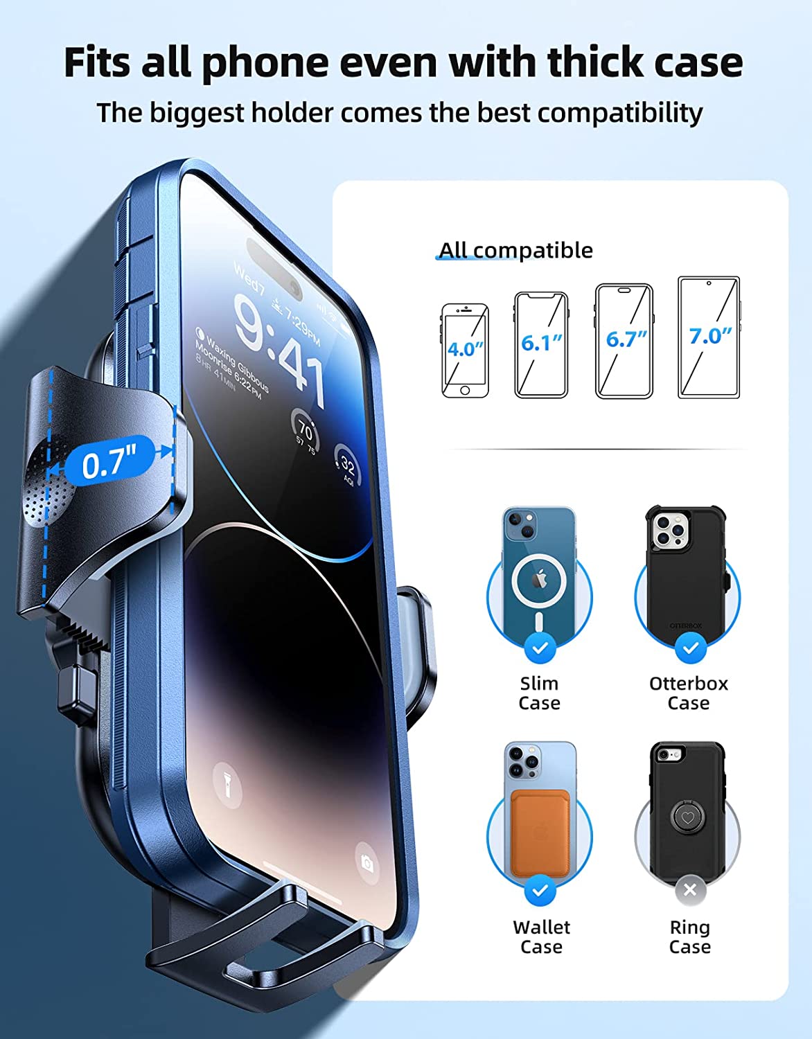• [ Universal Cell Phone Holder for Car ] This cell phone car holder mount fit for all smart phone even with thick case. Compatible with iPhone 14/14 pro/14 plus/14 pro max/13/ 13 Pro /13 Pro Max/ 12/12 Pro/12 Pro Max/12 Mini/SE/ 11 /11 Pro /11 Pro Max /XS / XR / XS Max / X / 8 / 8 Plus / 7 / 7 Plus / SE / 6s / 6 Plus / 6 / 5s / 5, Samsung Galaxy S10 / S10+ / S10e / S9 / S9+ / S8 / S8+ /Note 10+ /Note 10 / Note 9/Note 8/ S7 / S7 Edge / S6 S6 Edge / S5 / S4, LG, Google Pixel etc
