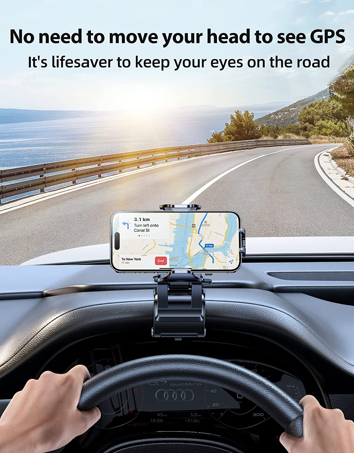 VICSEED Phone Mount for Car [Lifesaver to Keep Eyes on Road] Car Phone Mount in Front of Steering Wheel, Never Get Distracted Car Phone Holder Mount, Grip on Dashboard Car Mount for iPhone & Android