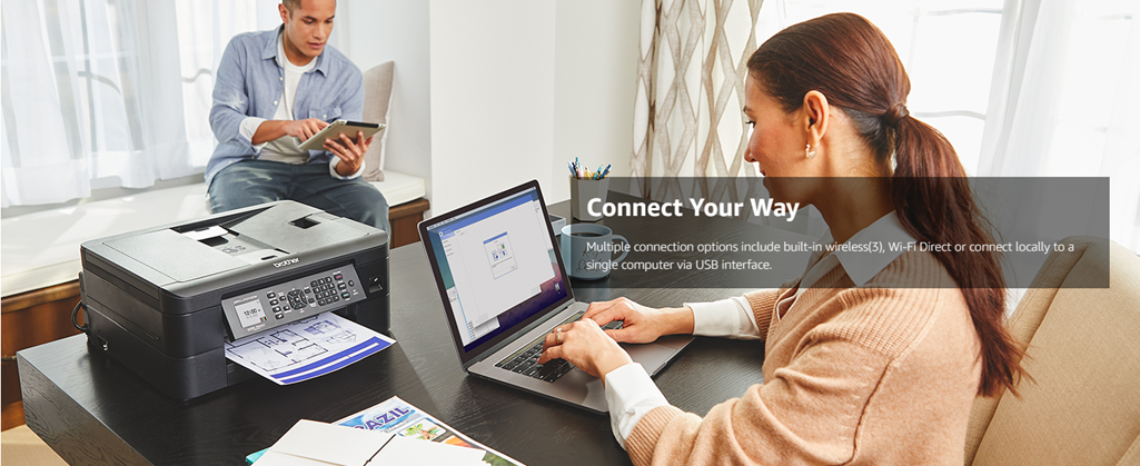 The Brother MFC-J1010DW color inkjet all-in-one printer is ideal for your home, home office or small office. Delivers robust features and business-centric functionality not found in similarly priced inkjet printers plus print up to 17 ppm for black and 9.5 ppm for color(5). Compact and economical, perfect for small spaces and budgets. Includes multiple connection options, including a built-in wireless(3) interface for sharing with multiple network users, Wi-Fi Direct(R), or connect locally via a USB interface. Delivering high quality, reliable printing, copying, scanning and faxing and enabling wireless printing from your desktop, laptop, smartphone or tablet(3). Use the 1.8-inch color display to navigate on screen menus. Featuring the Brother Mobile Connect(1) App, that gives you the freedom to print and manage your printer from virtually anywhere. The MFC-J1010DW also features the unique Brother Page Gauge(2) that estimates remaining page levels, so you always know how much ink you have left. Use the 20-page capacity automatic document feeder or the 150-sheet capacity adjustable paper tray for generous output without constant monitoring. Duplex printing helps save paper, while mobile device printing(3) and Cloud connectivity let you print-from and scan-to popular Cloud services(4) directly from the device. Has a 1-year limited warranty and free online, call, or live chat support for the life of the printer. Works with Alexa.(1) Requires wireless network connection; Brother Mobile Connect free app download not available in all countries.(2) Page Gauge is an estimate for informational purposes only. For actual cartridge yield information refer to manufacturer’s website.(3) Requires wireless network connection.(4) Requires Internet connection and account with desired service.(5) Based on ISO/IEC 24734 (after first set of ISO test pages). For inkjet print speed methodology, please visit manufacturer’s website.(6) All page yields are approximate and are calculated in accordance with ISO/IEC 24711; for additional page yield info, see manufacturer’s website.(7) Based on average monthly print volumes of approximately 100 pages at 60% black pages/40% color pages in accordance with ISO/IEC 24711 using 4 cartridges provided in-box. For additional page yield information, see manufacturer’s website.(8) Based on average monthly print volumes of approximately 150 pages at 60% black pages/40% color pages in accordance with ISO/IEC 24711 using 4 cartridges provided in-box. For additional page yield information, see manufacturer’s website.(9) Requires connection to a wireless network. AirPrint is a registered trademark of Apple Inc. Mopria® is a registered trademark or service mark of Mopria Alliance, Inc. in the United States and other countries. Unauthorized use is strictly prohibited. Wi-Fi Direct is a registered trademark of Wi-Fi Alliance®. Brother Mobile Connect and Brother iPrint&Scan free app download are not available in all countries.(10) The mobile device must have NFC capability and run Android OS 4.4 or later.Images are for illustrative purposes only. Specifications subject to change.