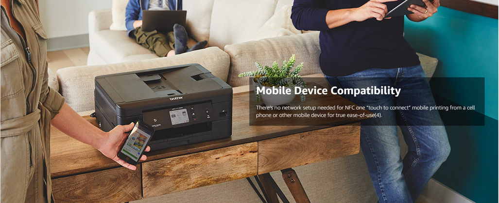 The MFC-J1170DW is easy to connect and operate along with being compact and economical making it ideal for your home office or small office needs. Featuring fast inkjet print – up to 17 ppm black and 16.5 ppm color(6). Its robust features, high quality output, duplex printing and business-centric functionality are not all normally found in similarly priced inkjet printers. Offering multiple connection options including a built-in wireless(3) interface for sharing with multiple network users, Wi-Fi Direct(R), Ethernet or connect via a USB interface. There’s no network setup needed for NFC one “touch to print and scan” mobile device printing(4). A 2.7 inch color touchscreen enables easy navigation to access powerful features plus print-from and scan-to popular cloud services directly from the printer(5). Also featuring the Brother Mobile Connect(1) App, that gives you the freedom to print and manage your printer from virtually anywhere. The MFC-J1170DW also features the unique Brother Page Gauge(2) which estimates remaining page levels, so you always know how much ink you have left. Use the 20- page capacity automatic document feeder or the 150-sheet capacity adjustable paper tray for generous output without constant monitoring. Includes a 2-year limited warranty and free online, live chat or phone support for the life of the printer. Works with Alexa.(1) Requires wireless network connection; Brother Mobile Connect free app download not available in all countries.(2) Page Gauge is an estimate for informational purposes only. For actual cartridge yield information refer to manufacturer’s website.(3) Requires wireless network connection.(4) The mobile device must have NFC capability and run Android OS 4.4 or later.(5) Requires Internet connection and an account with desired service.(6) Based on ISO/IEC 24734 (after first set of ISO test pages). For inkjet print speed methodology, please visit manufacturer’s website.(7) All page yields are approximate and are calculated in accordance with ISO/IEC 24711; for additional page yield info, see manufacturer’s website.(8) Based on average monthly print volumes of approximately 100 pages at 60% black pages/40% color pages in accordance with ISO/IEC 24711 using 4 cartridges provided in-box. For additional page yield information, see manufacturer’s website.(9) Based on average monthly print volumes of approximately 150 pages at 60% black pages/40% color pages in accordance with ISO/IEC 24711 using 4 cartridges provided in-box. For additional page yield information, see manufacturer’s website.(10) Requires connection to a wireless network. AirPrint is a registered trademark of Apple Inc. Mopria® is a registered trademark or service mark of Mopria Alliance, Inc. in the United States and other countries. Unauthorized use is strictly prohibited. Wi-Fi Direct is a registered trademark of Wi-Fi Alliance®. Brother Mobile Connect and Brother iPrint&Scan free app download are not available in all countries.Images are for illustrative purposes only. Specifications subject to change.