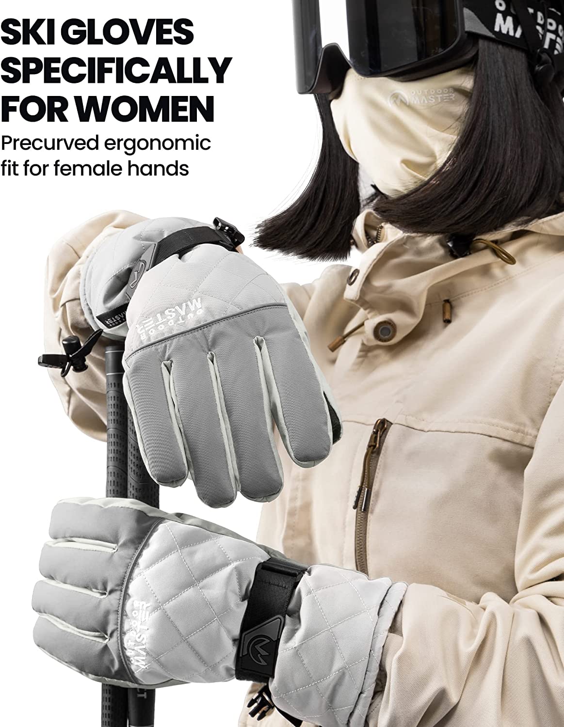 SPECIFICALLY FOR WOMEN - With elegant and fashion rhombus design, the gloves fit into female's palm perfectly. OutdoorMaster women skiing glove made of thickening cotton and premium thermal fleece lining material, always keep you hand warm, breathable and comfortable.
