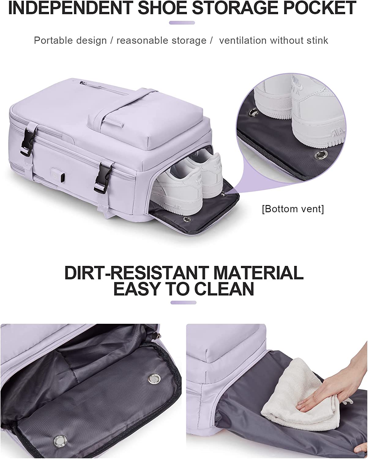 VECAVE Travel Backpack,Airline Approved Carry On Backpack for Women Waterproof 14 Inch Laptop Backpack with Shoe Compartment Casual Daypack Backpacks Purple