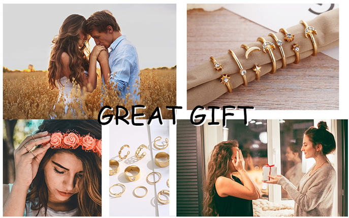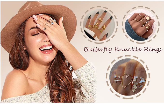 - Stacking Rings:Elevate you style with our trendy stacking rin set Featuring a arety of fashion-forward elements like butterfly, snakes, stars,and moons,these rinos are perfect for ary fastionist