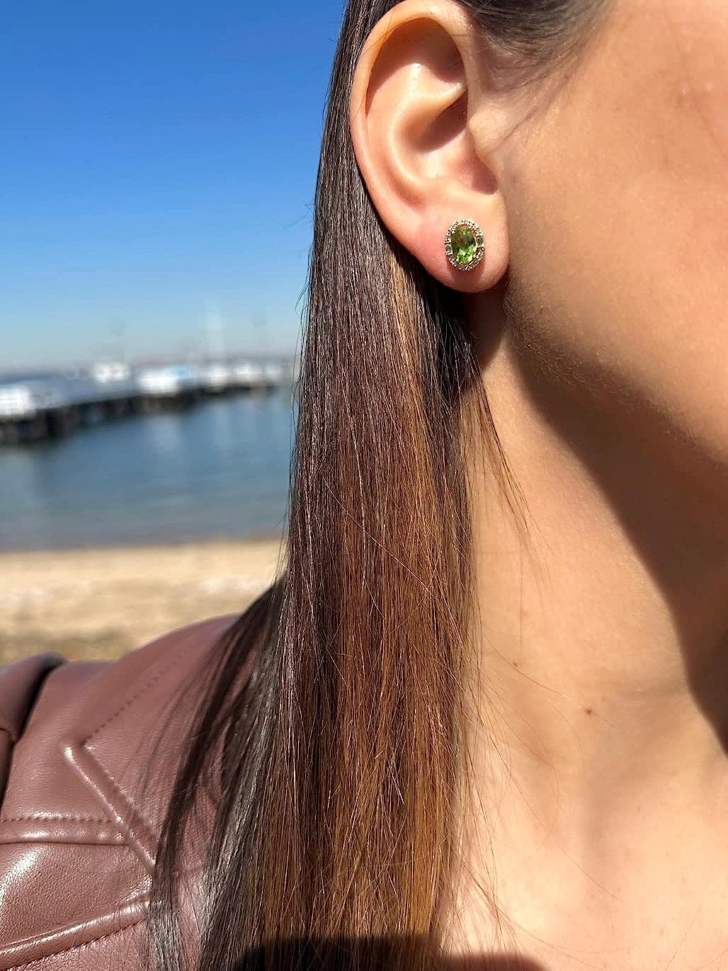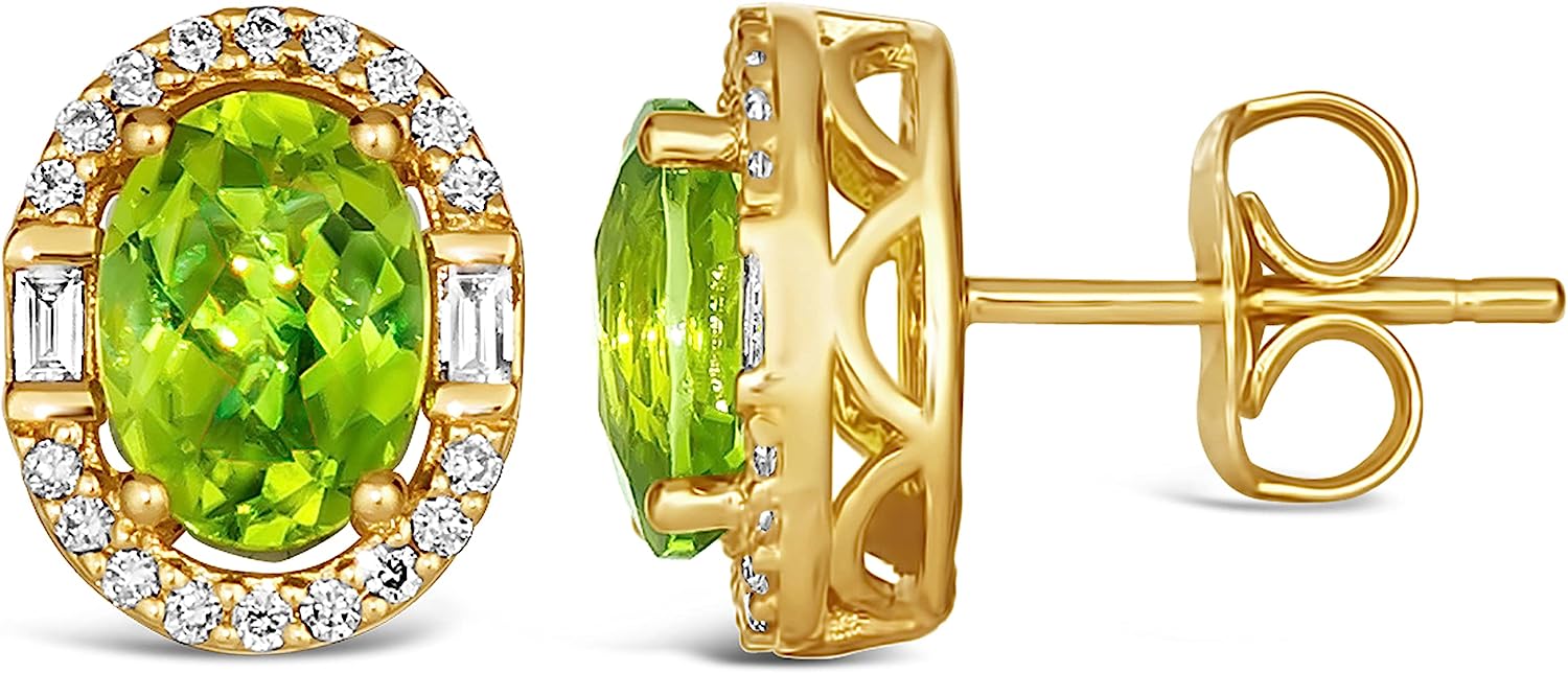 1/5 Carat Diamond and 1 2/3 Carat Green Peridot Oval Halo Stud Earrings for Women in 14k Yellow Gold (G-H, SI1-SI2 / VS2-SI1, cttw) Push Back Studs by LeVian