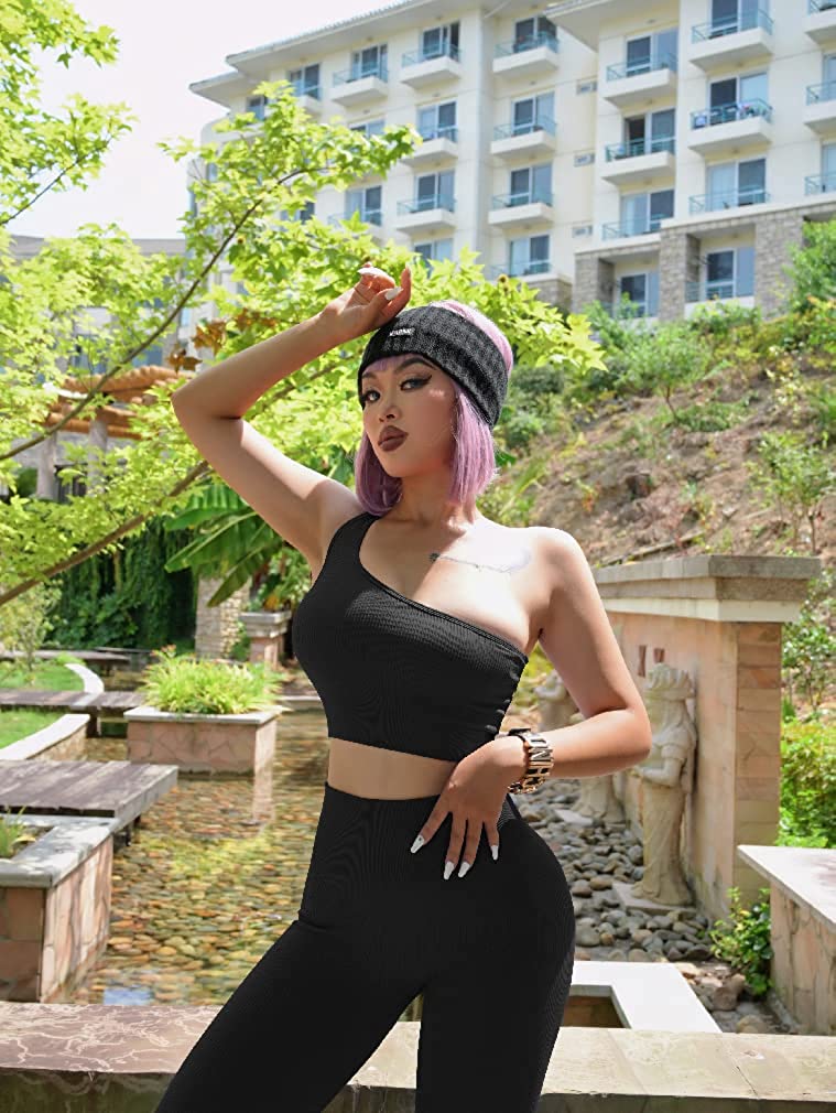 - [Super Flattering]-elastic yoga outfit sets are very comfortable to wear, designed with tummy control wide waistband contours your curves and shape your body.Ribbed textured non-slip design that can keep it in place when you walk around.