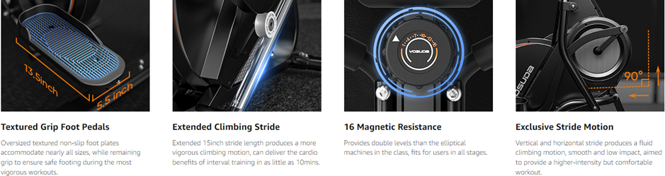 - 【Hyper-Quiet and Smooth Operation】Perfect for shared spaces. We developed the latest technology magnetic system and eliminates noise, also control the sound at 26DB even after millions of times workout. The aluminium alloy double-slide rails provide smooth climb and stride, protecting your knees.