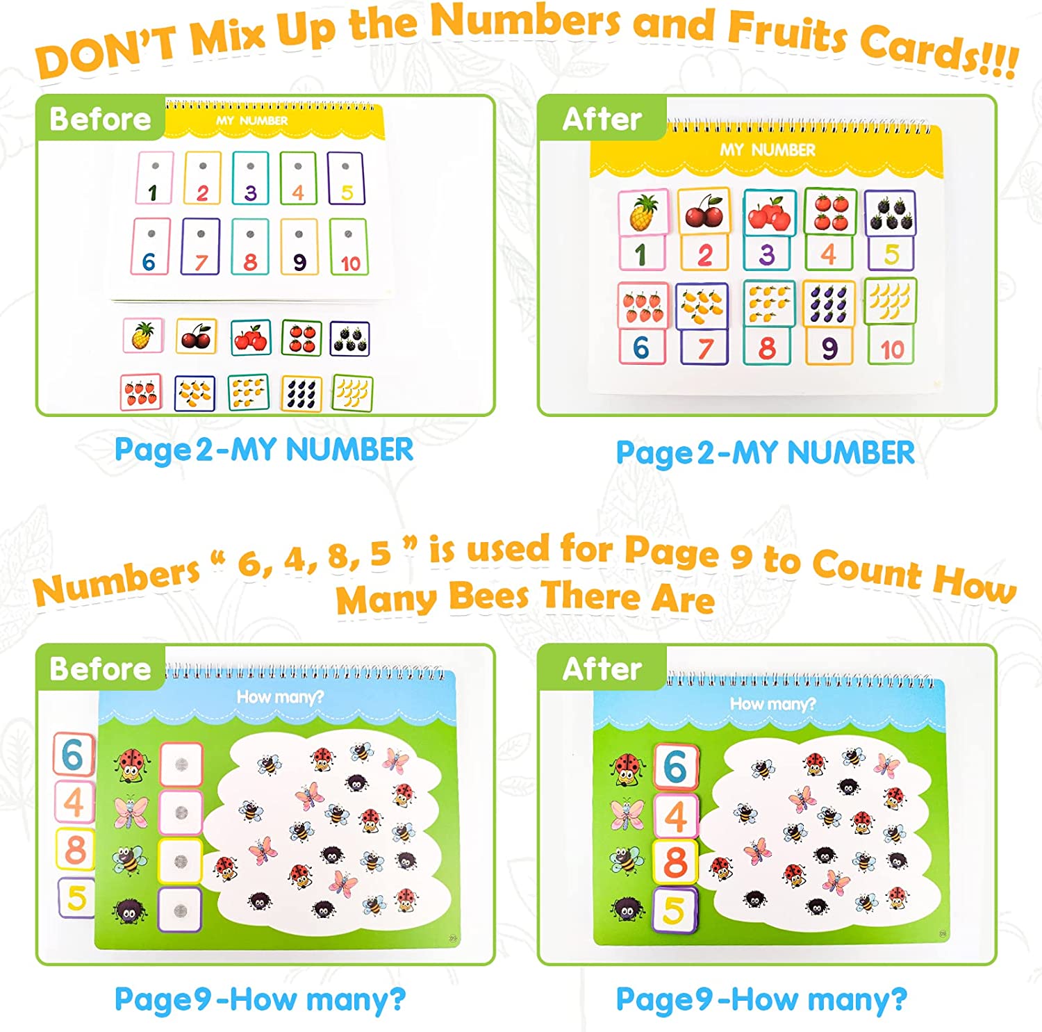 • 1. DON’T Mix Up to Use the Numbers and Fruits Cards In The Same Pages !!!