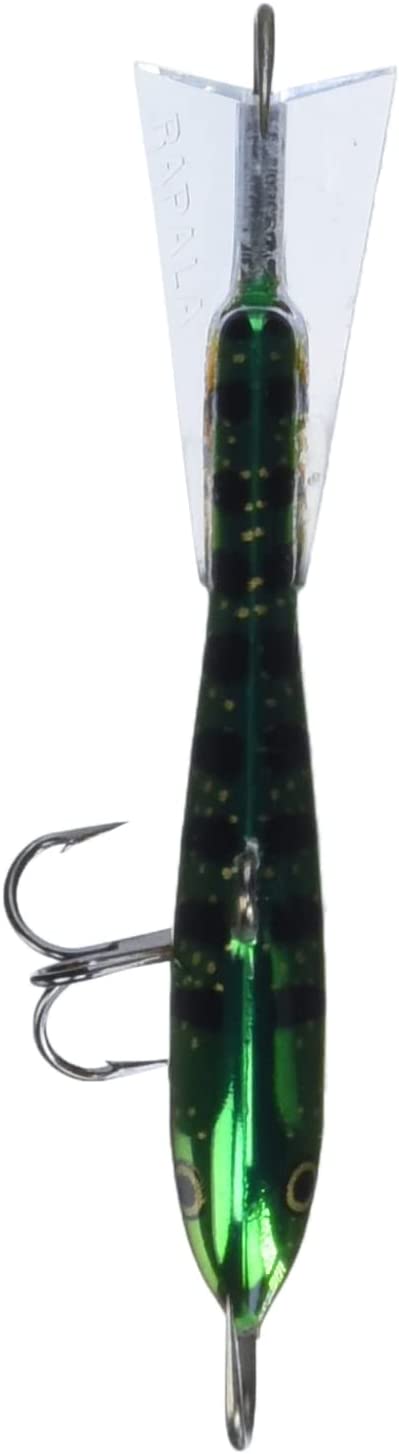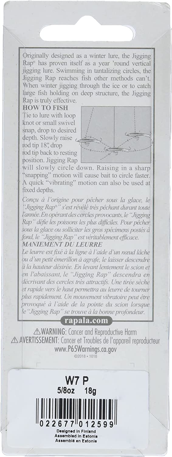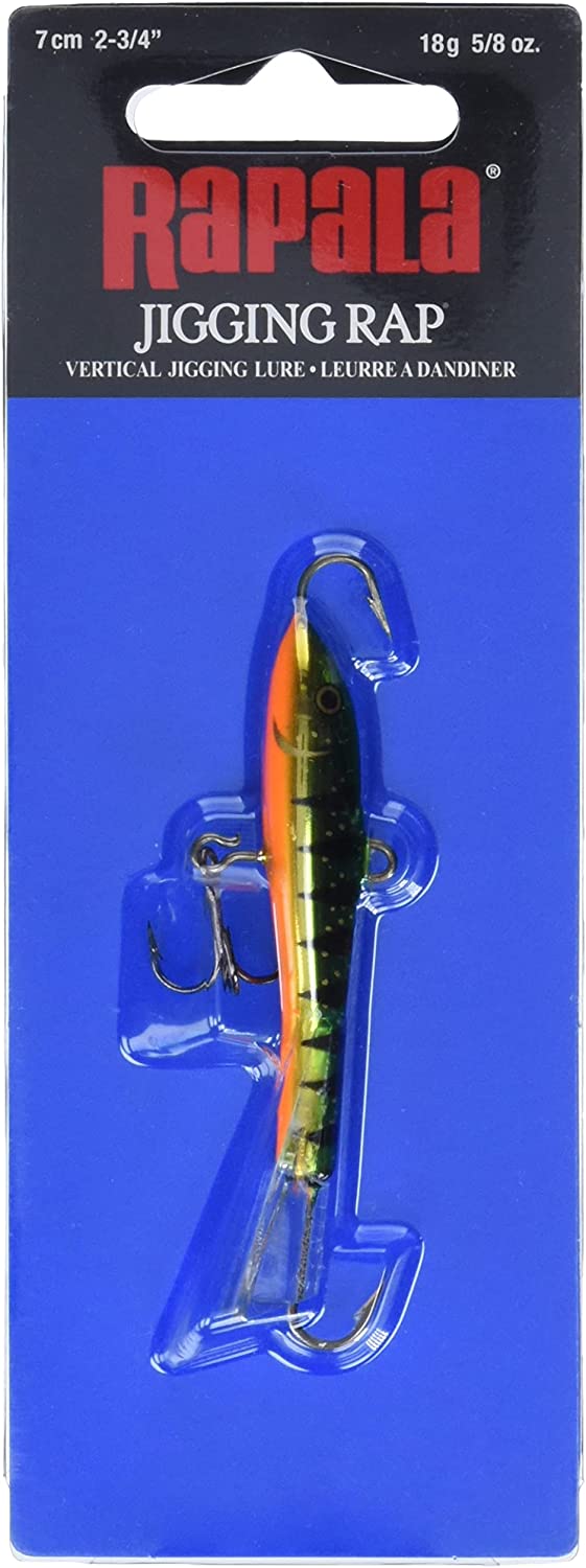 A minnow profile bait, the Jigging Rap swims in tantalizing circles when raised and lowered. Quick snap rod tip darts in sporadic motion.