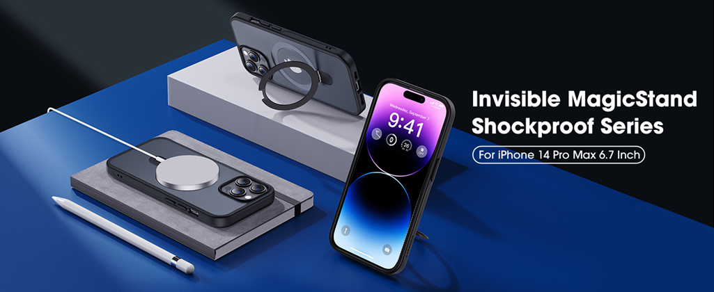• 【All-New MagicStand Series - Beyond Being】After years of deliberate planning and designing, CASEKOO is the FIRST TO ENGINEER the brand-new Invisible MagicStand Series for iPhone 14 Pro Max Phone Case. We combined the strong magnetic technology with a foldable kickstand by applying our compact and practical design philosophy. MagicStand case for iPhone 14 Pro Max easily attaches to all MagSafe accessories. The versatile kickstand on the back of the phone case folds back into a groove when unused.