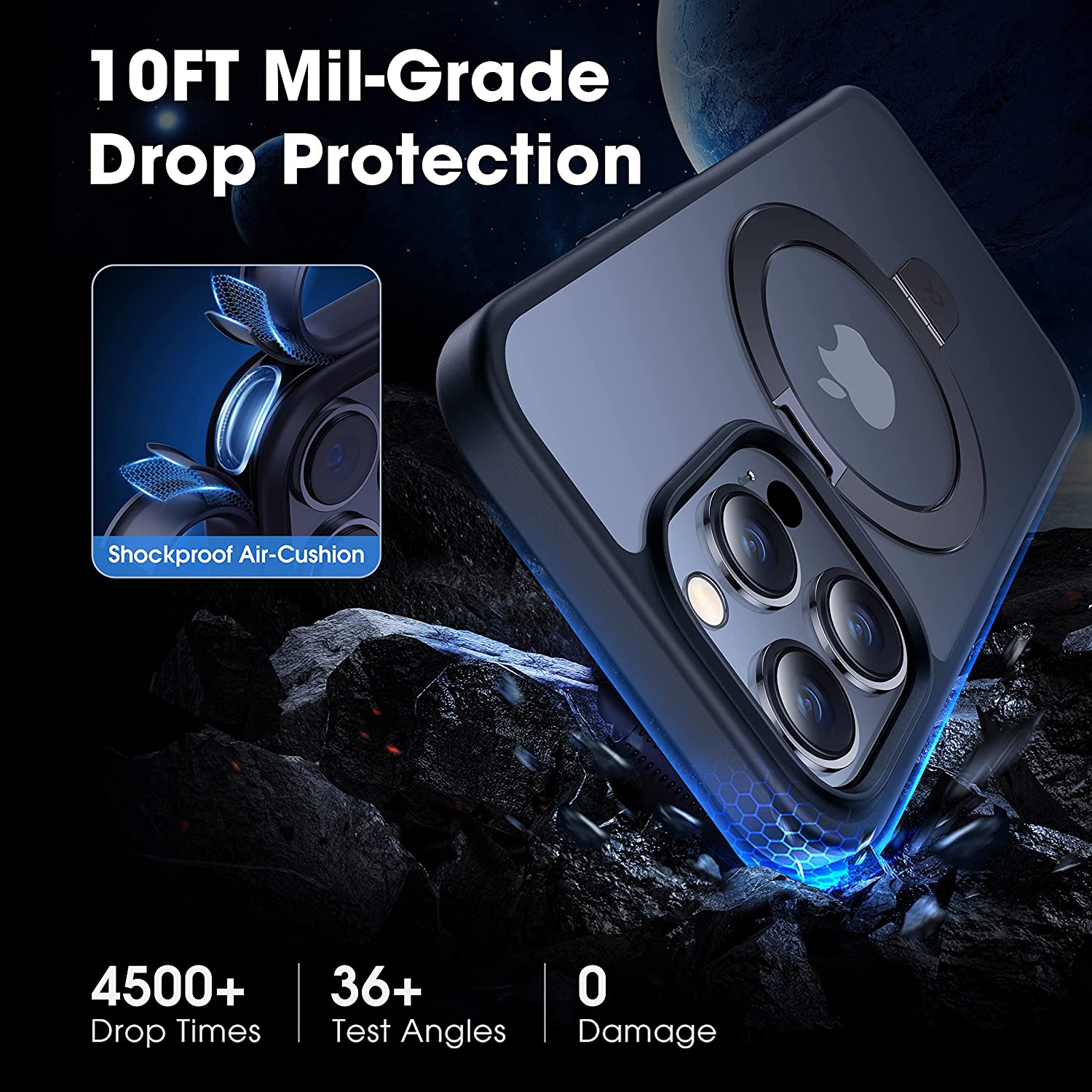 • 【Redefining Military-Grade Drop Protection】Based on 5000+ extreme drop resistance tests, the iPhone 14 Pro Max cases' DURABILITY AND STURDINESS surpass most general phone cases. Furthermore, the shockproof polycarbonate back and the airbag cushions increase its durability and protect your phone against everyday drops and bumps. A 2.5 mm offset border over the camera opening prevents the lens from being scratched; a 1.5 mm bezel over the screen keeps your iPhone screen from damage.