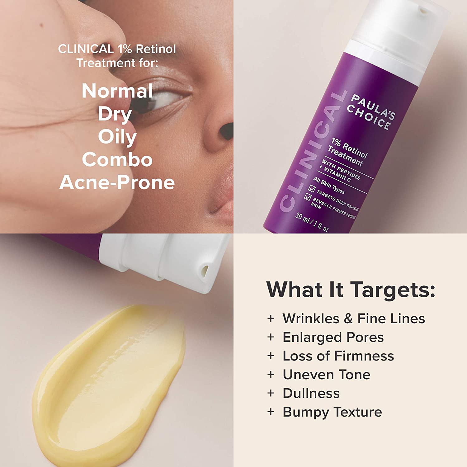 • CLINCAL 1% RETINOL TREATMENT: Address advanced signs of aging & deep wrinkles with potent, encapsulated retinol, vitamin C + peptides.