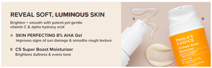 Paula's Choice 8% AHA Gel Leave-On Exfoliant with Glycolic Acid + C5 Super Boost Moisturizer with 5% Vitamin C, Duo for Sun Damage, Discoloration, Uneven Tone & Texture, Fragrance-Free & Paraben-Free