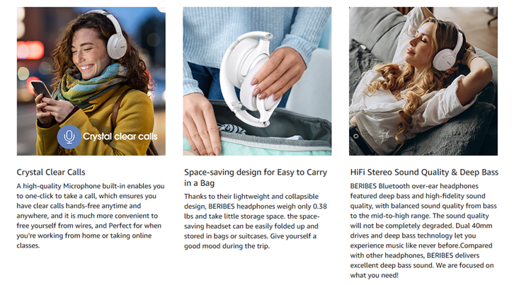 The BERIBES Bluetooth headphones will give you a deep, powerful, and immersive sound at any volume, make your overall listening experience just that much better. Our goal has always been committed to providing our customers with better sound quality as the focal point of our engineering.