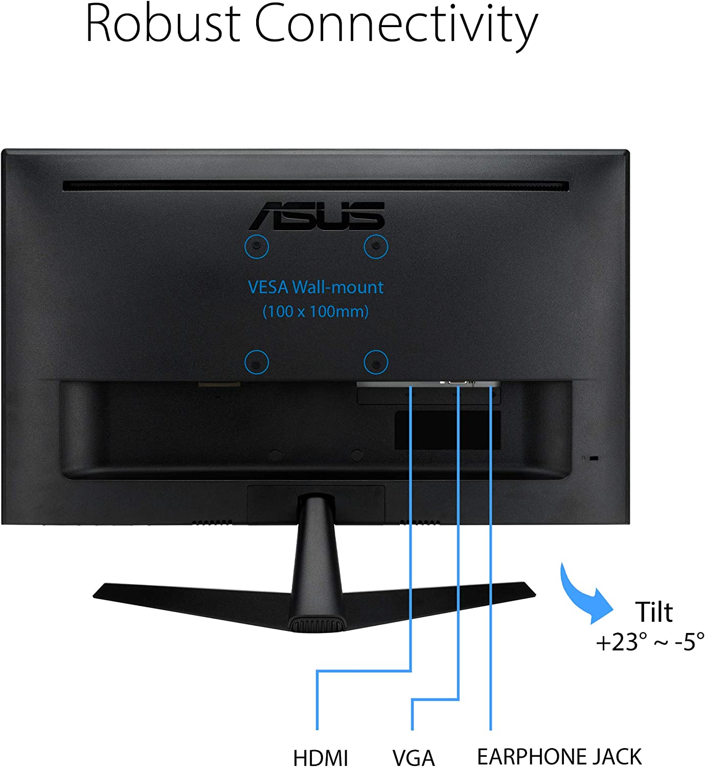 The 23.8” VY249HE monitor is equipped with ASUS BacGuard, a ionic silver treatment applied on the midframe for a more sanitary surface. With Eye Care Plus, the VY249HE features additional color augmentation and rest reminder modes for a more user-friendly experience.