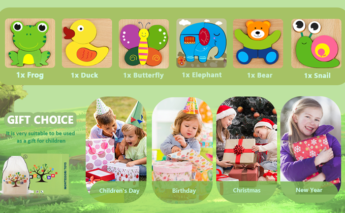 【BABY GIFTS】Colorful and cute animal wooden puzzles, exquisite gift boxes, and easy-to-store storage bags. Suitable for baby boy and girl birthday, easter, halloween, christmas gifts.