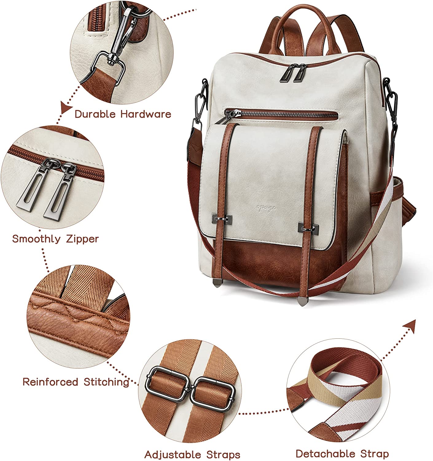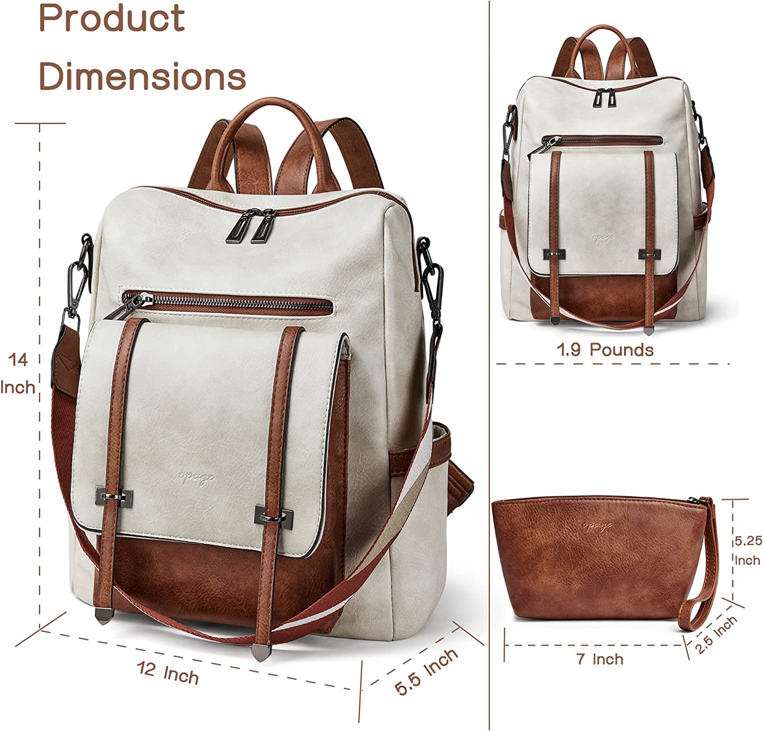 OPAGE Backpack Purse for Women Leather Backpack Purse Travel Backpack Fashion Designer Ladies Shoulder Bags With Wristlets
