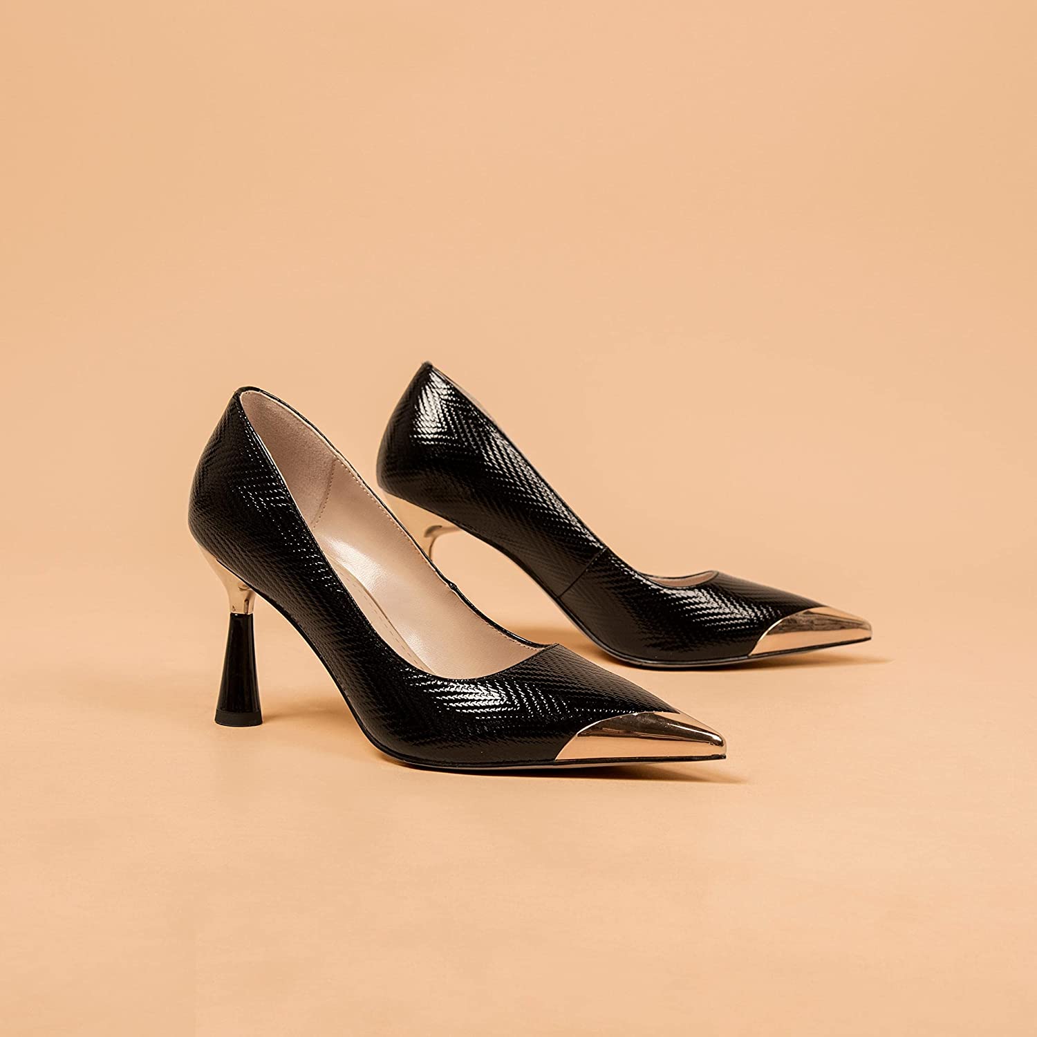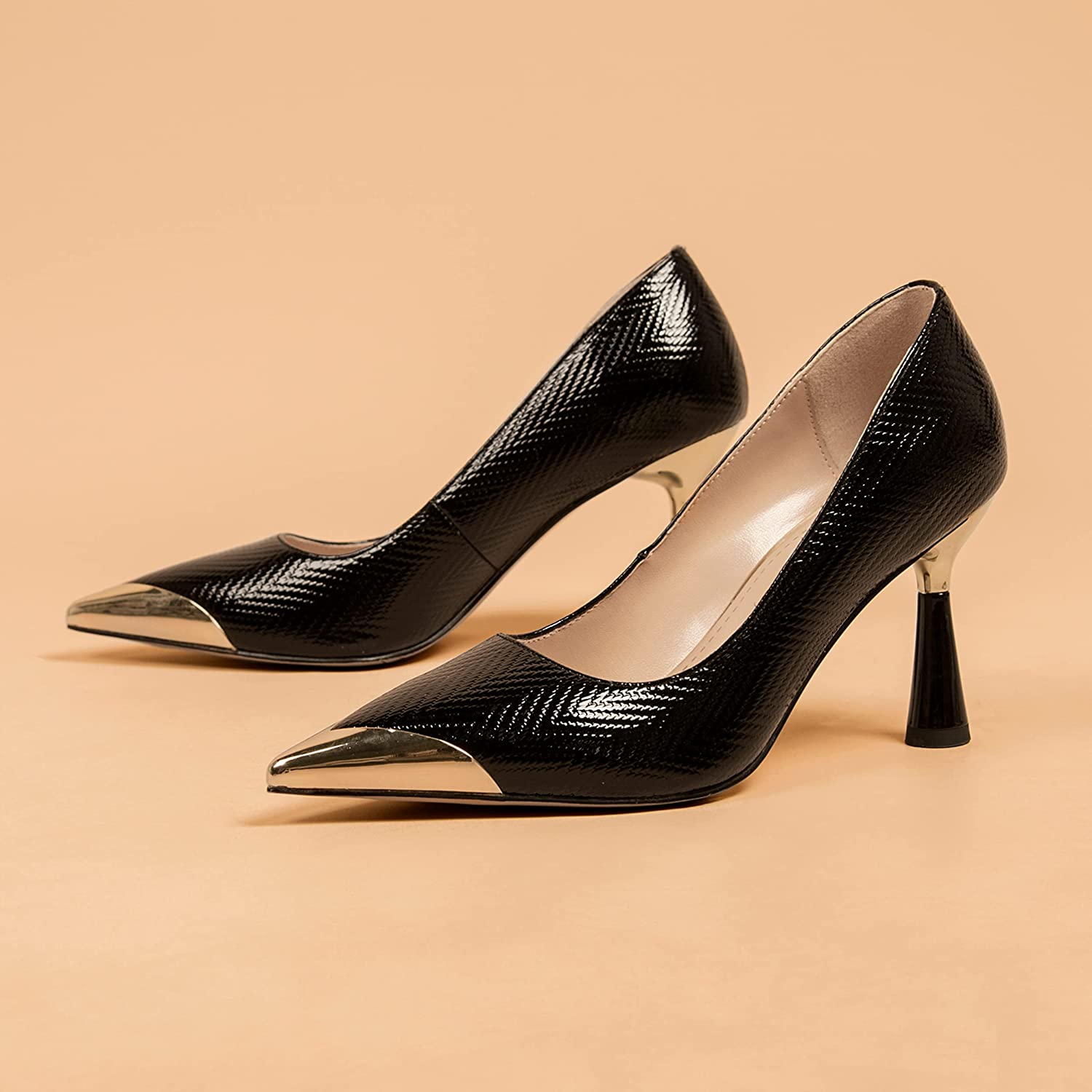 Kiafuo Fashion Dress High Heels for Women Metal Pointed Party Dress Wedding Pumps Slip-On Sexy Street Ladies Stilettos