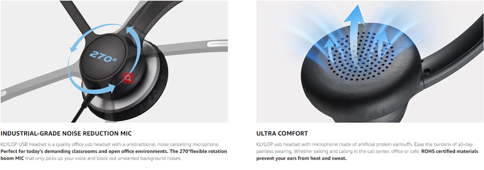 - ✅【????? ????? ??????, ????? ???? ?????】? KIND TIPS: Our PC headset microphone uses noise reduction technology instead of active noise canceling, improving call quality ensures clear calls. Equipped with high-performance magnetic circuits, KLYLOP USB headset with microphone noise reduction is designed for clear communication on business Skype chat, Webinars, or calls. It also has an acoustic shock protection circuit to protect your hearing from sudden loud noise.