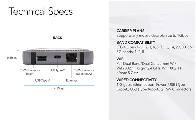The NETGEAR Nighthawk mobile hotspot router is the world's first commercial gigabit class LTE mobile hotspot router to achieve maximum download speeds of 1Gbps It combines ultrafast download speeds support for cat 16 LTE advanced and 4 band carrier aggregation providing the best Internet connection possible while on the go or at home - Max 1 Gbps download speeds and 150 Mbps upload speeds - LTE CAT 16 4-band CA and 4x4 MIMO - LTE/4G Bands 1 2 3 4 5 7 12 14 29 30 66 - 3G Bands 2 4 5 - Full Dual-Band/Dual-Concurrent WiFi - WiFi 802 11 a/b/g/n/ac - 2 4” LCD panel - 5040mAh battery - Ethernet Port - USB-C Port - Dual TS-9 external 3G/4G antennas connectors. Refer instruction manual for troubleshooting. T-Mobile in the US has gone through some recent changes when it comes to their plans and as a result of those changes, some users may find themselves not being able to have their MR1100 Nighthawk M1 Mobile Router connect to the T-Mobile network. If you find that you are no longer able to connect to your MR1100 Mobile Router to the T-Mobile Network, please contact your T-Mobile support and ensure that your device is on the correct plan for mobile hot spots.