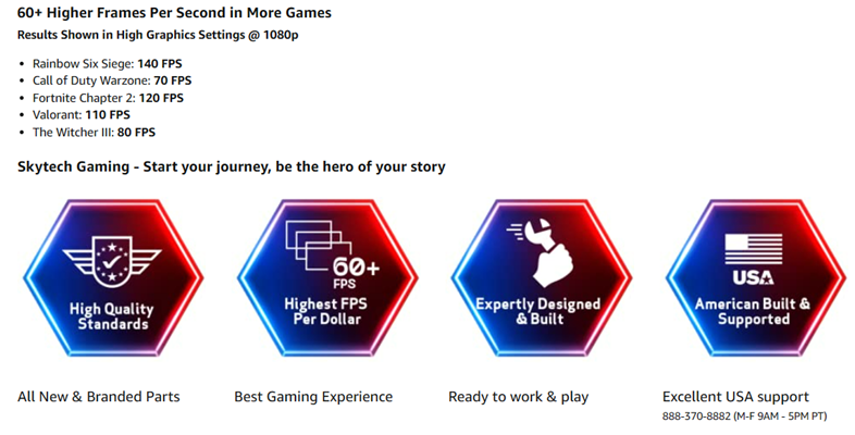 • This powerful gaming PC is capable of running all your favorite games such as Call of Duty Warzone, Fornite, Escape from Tarkov, Grand Theft Auto V, Valorant, World of Warcraft, League of Legends, Apex Legends, Roblox, PLAYERUNKNOWN’s Battlegrounds, Overwatch, Counter-Strike: Global Offensive, Battlefield V, New World, Minecraft, Elden Ring, Rocket League, The Division 2, and more at High to Ultra settings, crisp 1080p FHD resolution and smooth 60 plus FPS game play.