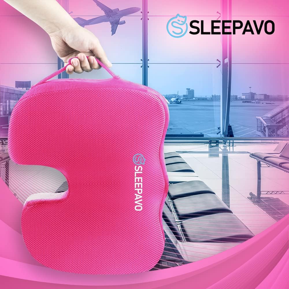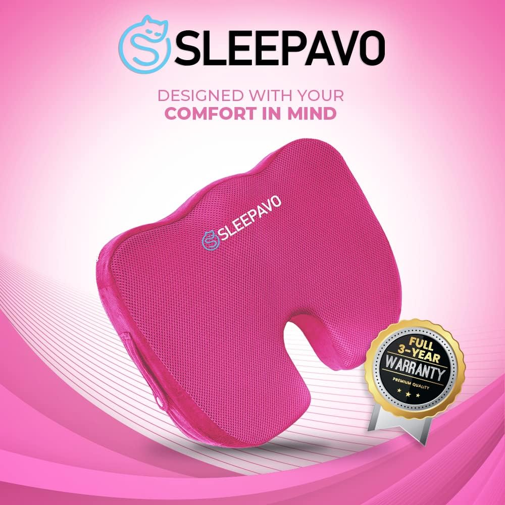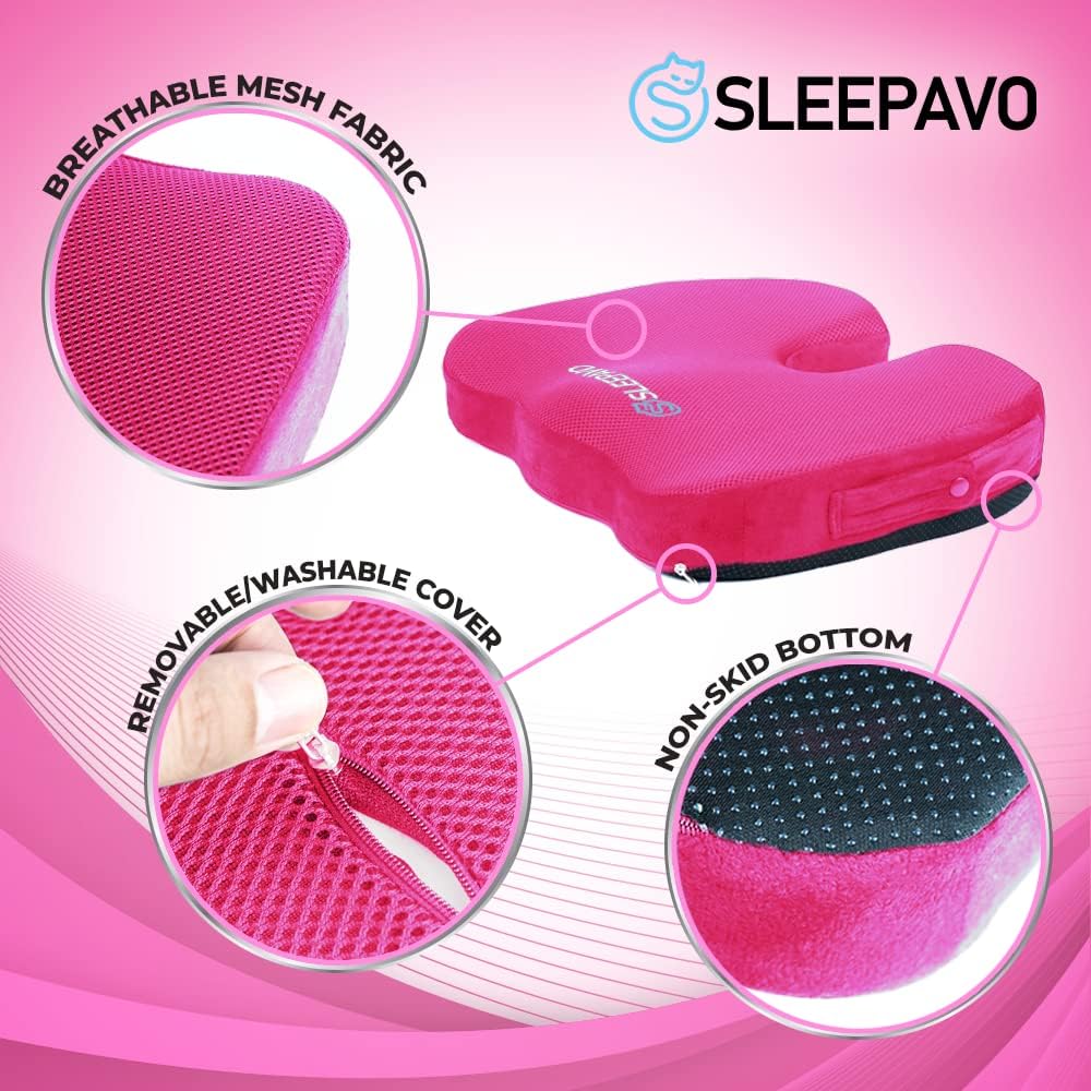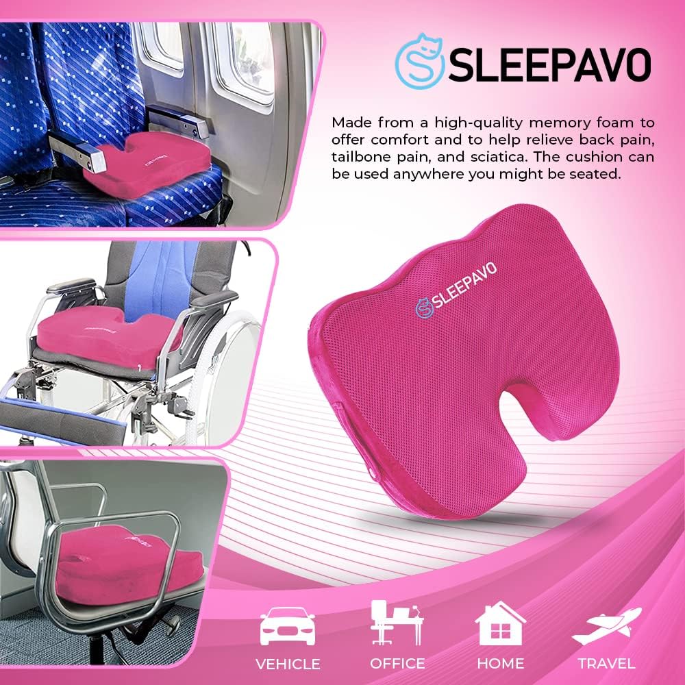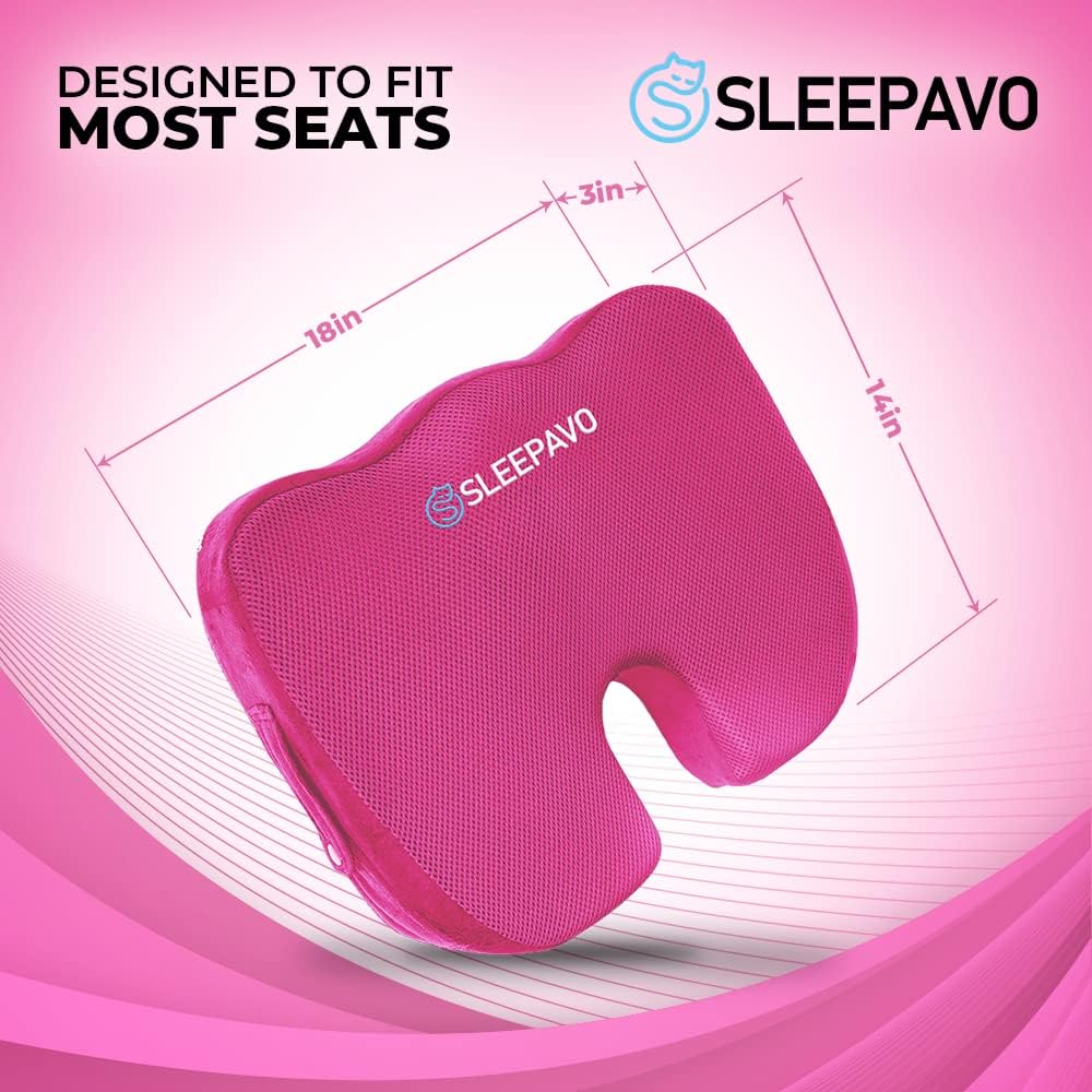 Sleepavo Pink Memory Foam Seat Cushion for Office Chair - Cooling Gel Pillow for Sciatica Coccyx Back Tailbone & Lower Back Pain Relief - Chair Pad for Lumbar Support in Office Desk, Car & Airplane