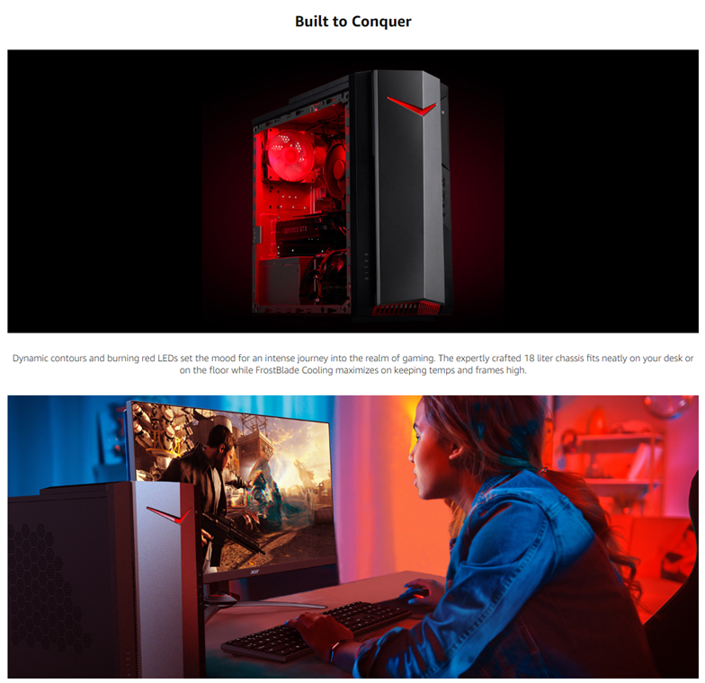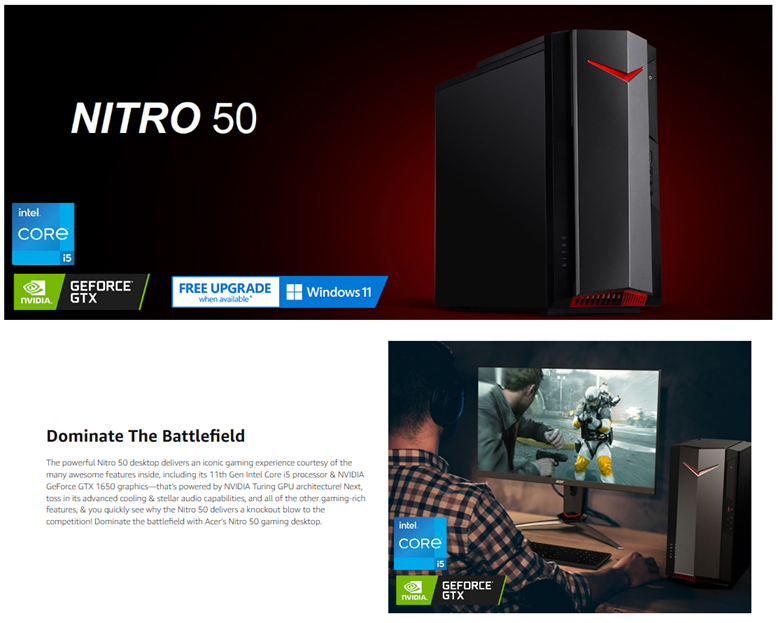 Acer Nitro 50 N50-620-UA91 Gaming Desktop | 11th Gen Intel Core i5-11400F 6-Core Processor | NVIDIA GeForce GTX 1650 | 8GB DDR4 | 512GB NVMe M.2 SSD | Intel Wi-Fi 6 AX201 | Keyboard and Mouse