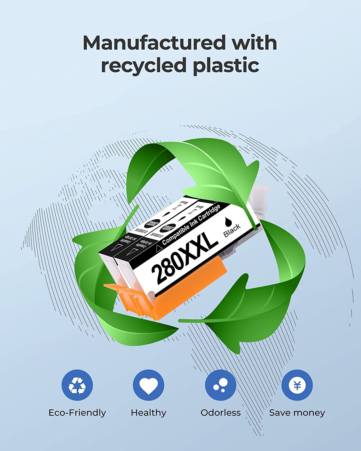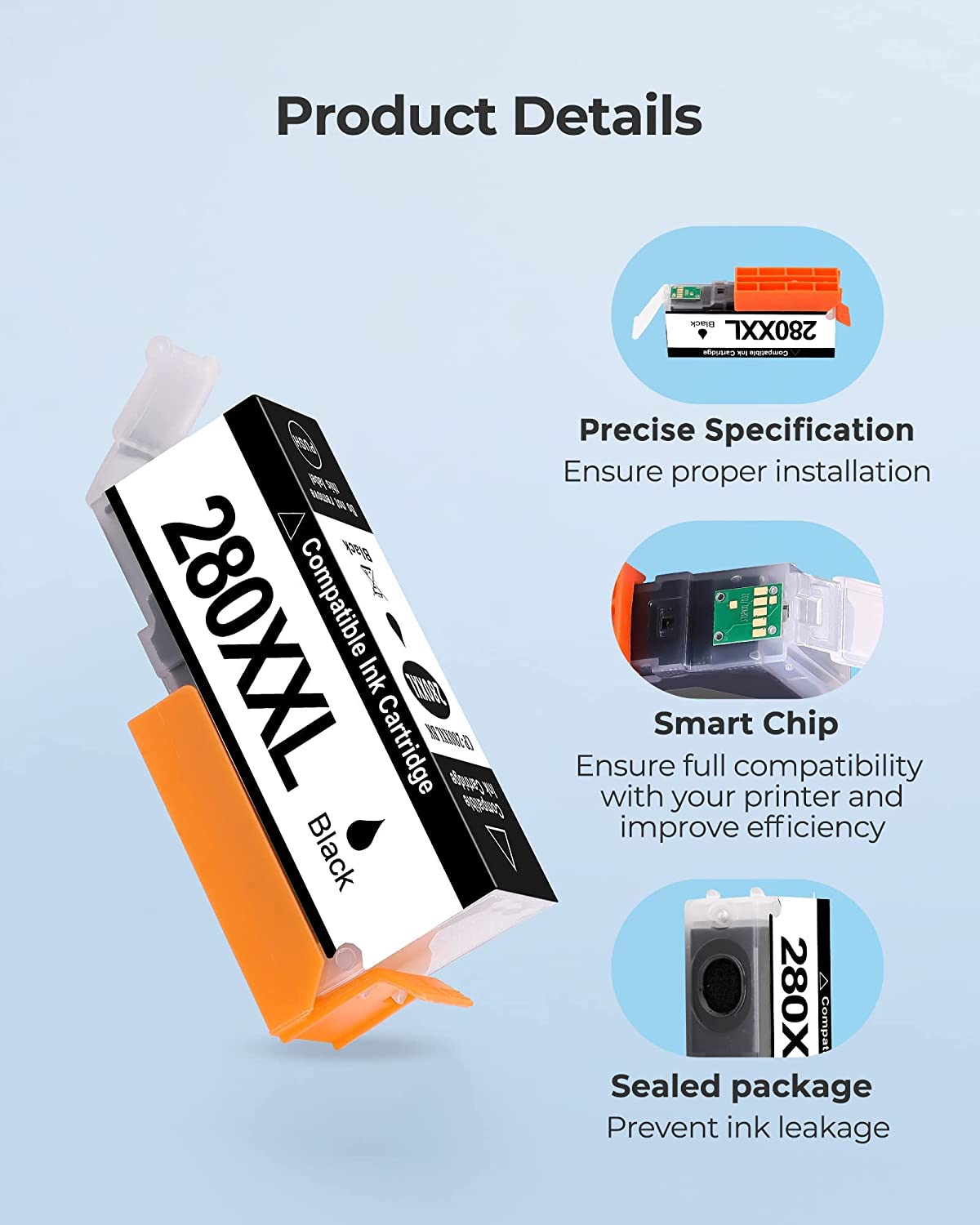 PGI-280 XXL Compatible Ink Cartridge Replacement for Canon 280 pgbk XXL High Yield Use to PIXMA TR7520 TR8520 TS6120 TS6220 TS8120 TS8220 TS9120 TS9520 TS9521C Printer (2 Large PGBK)