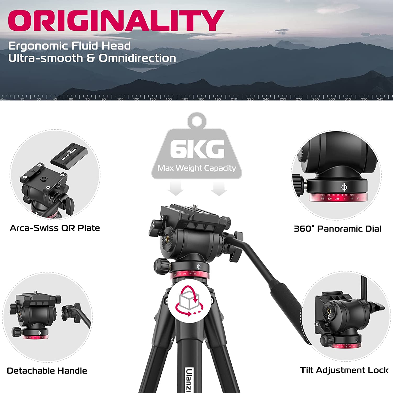 360° Panorama Fluid Pan-tilt Head: Precise auxiliary panorama shooting