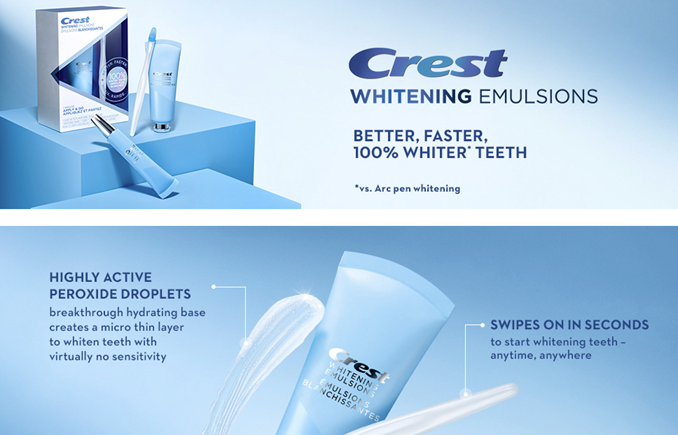 You've never seen teeth whitening like this! The all-new Crest Whitening emulsions is a breakthrough formula featuring a thin layer of 5x more active peroxide droplets suspended in a hydrating base whitening your teeth with virtually no sensitivity. This means it starts working instantly and stays on your teeth 10x longer, with No need to rinse. Just swipe on your teeth and go! This convenient size allows you to apply the whitening emulsions with great precision and comes with a stand for counter display. Crest Whitening emulsions is the best way to whiten your teeth. It removes stains, prevents new ones and leaves your teeth 100% whiter. Vs arc pen whitening